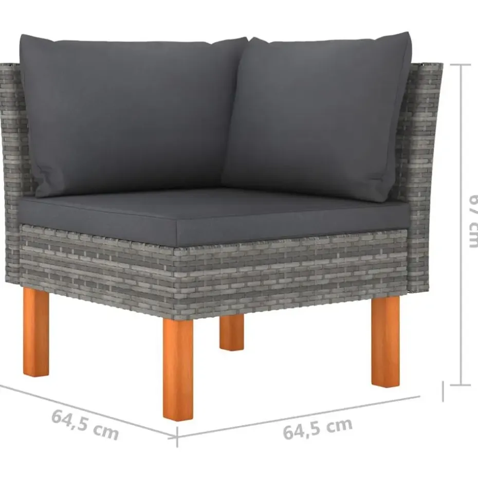 - Materiaal: PE-rattan, gepoedercoat staal en massief eucalyptushout met olieafwerking