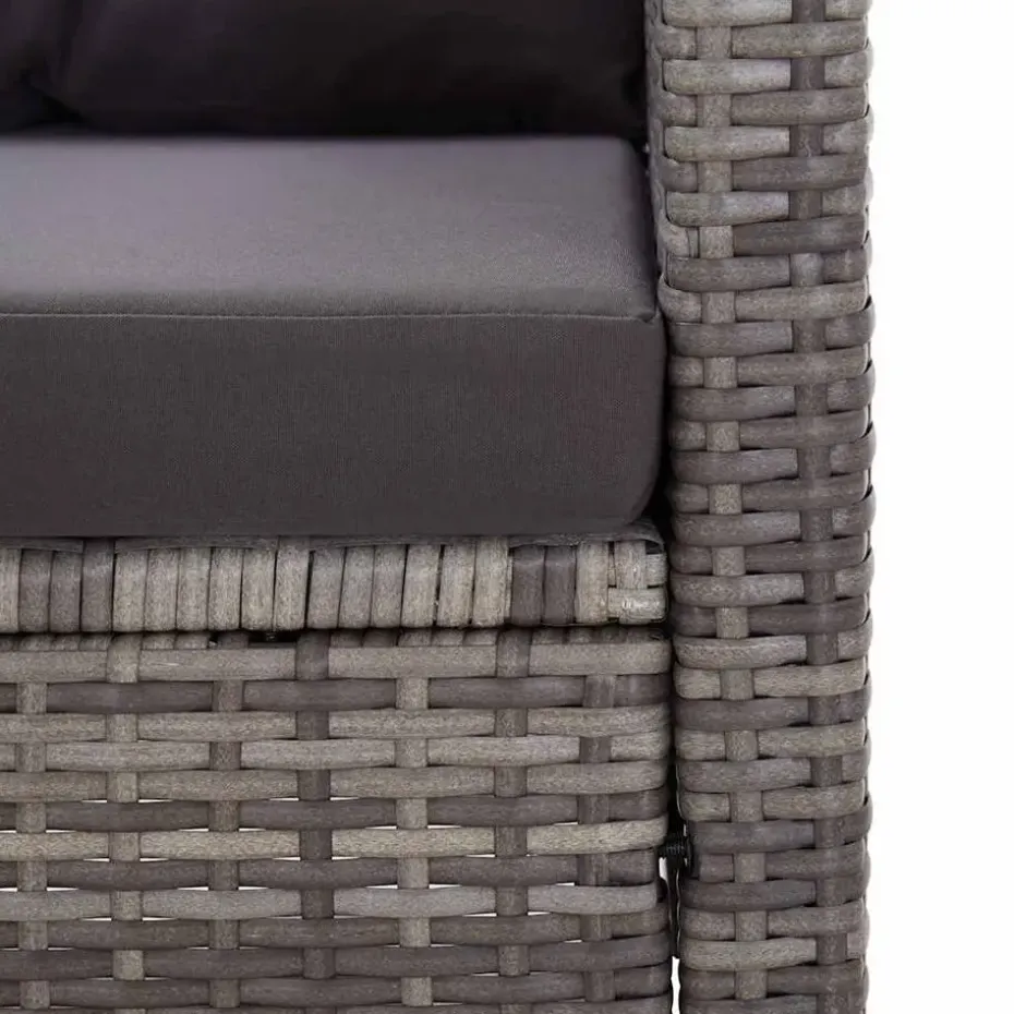 - Materiaal: poly rattan, stof (100% polyester) en gepoedercoat staal