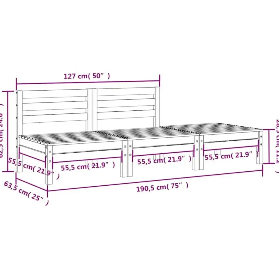 - Totale afmetingen: 190,5 x 63,5 x 62,5 cm (B x D x H)