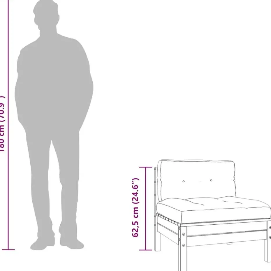 - Afmetingen hoekbank zonder armleuningen: 63 x 63 x 62,5 cm (B x D x H)