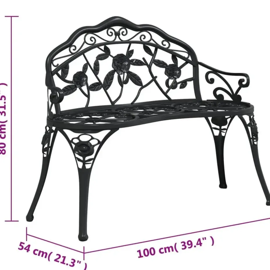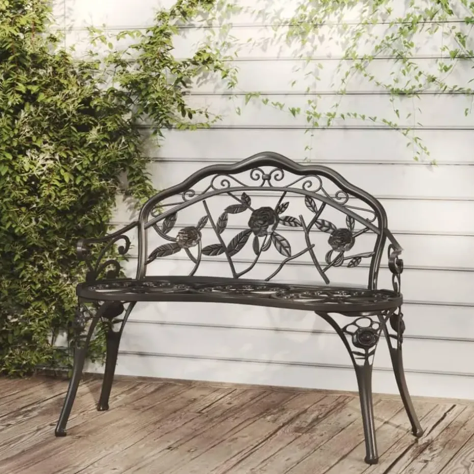 Deze bank is gemaakt van hoogwaardig gietaluminium, hij is weerbestendig en gaat zeer lang mee. Dankzij de gietijzeren poten is dit bankje extra stevig en sterk. De gedetailleerde ornamenten en het charmante bloemenpatroon voegen een elegant accent toe aan je tuin of buitenruimte. Leun achterover en geniet in alle comfort van je vrije tijd met dit trendy bankje!