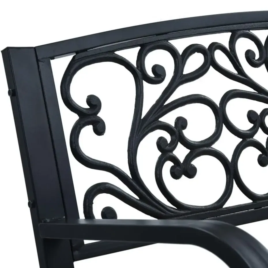Met een massief houten zitting, gietijzeren rugleuning en stalen frame is de bank weerbestendig en zeer duurzaam. Het mooie en opvallende patroon in de rugleuning voegt een stijlvol vleugje toe aan elke tuin of patio. De bank is ook een perfecte aanvulling op de entree van je huis.