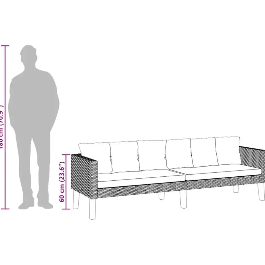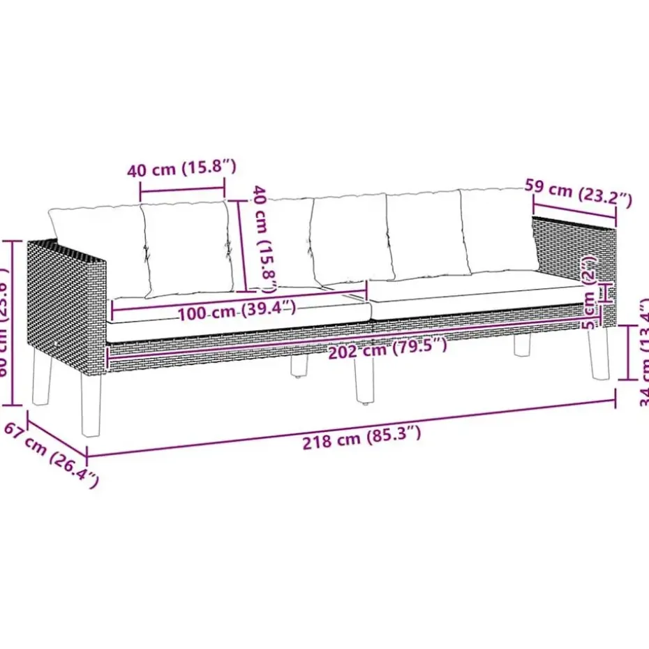 - Zitoppervlak: 202 x 59 cm (B x D)