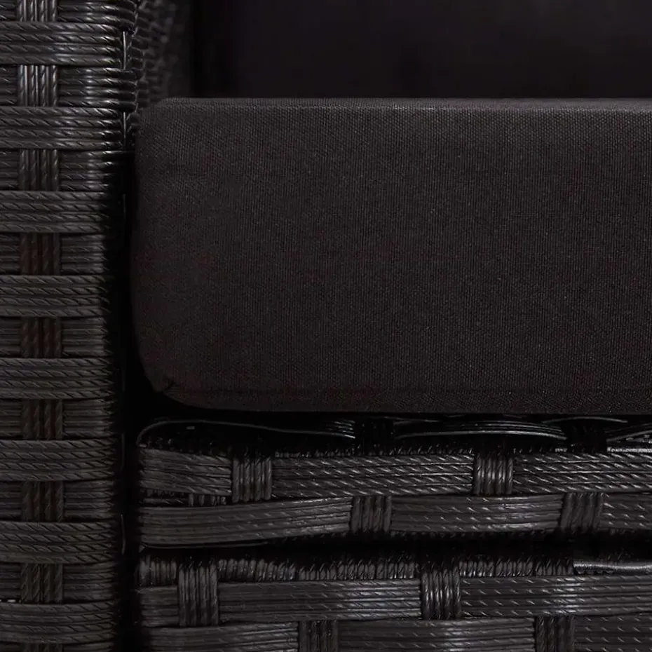 - Materiaal: poly rattan, stof (100% polyester) en gepoedercoat staal