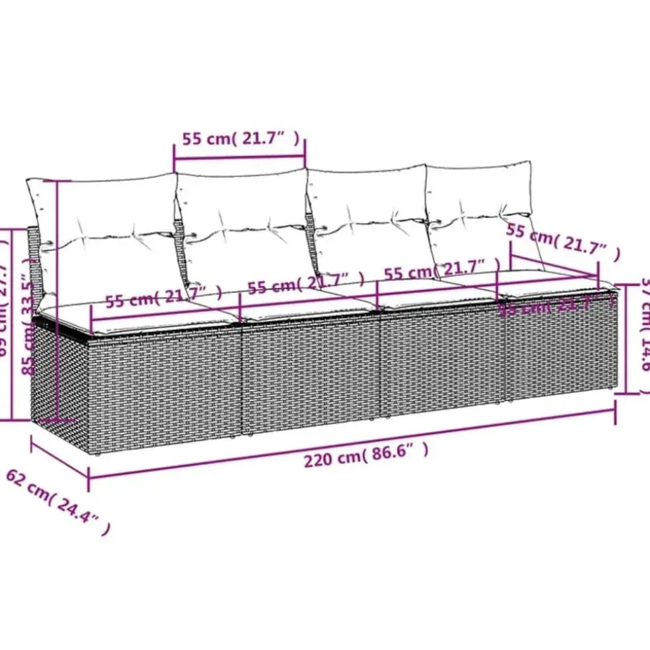 - Zithoogte vanaf de grond (zonder kussen): 37 cm