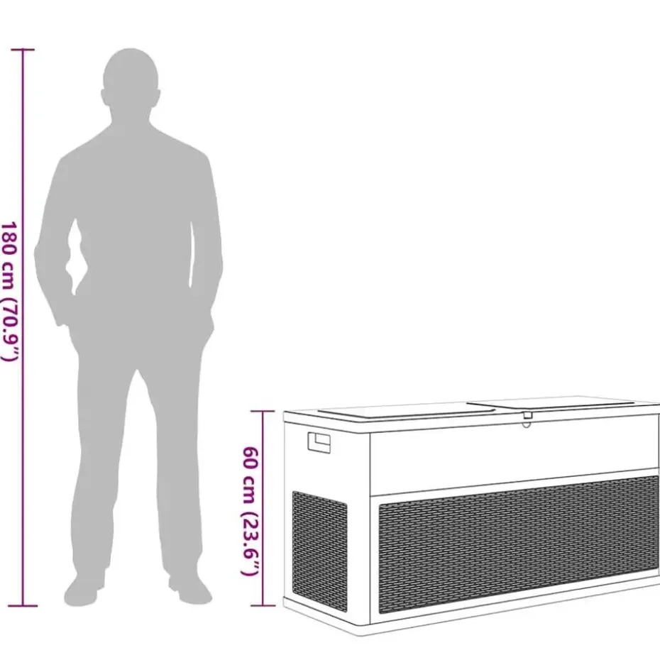 Gemaakt van duurzaam, weerbestendig kunststof, waardoor deze opbergdoos perfect geschikt is voor zowel binnen als buiten. Door het eenvoudige maar klassieke ontwerp past de tuinkist goed in elk interieur.