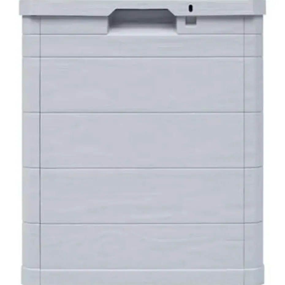 - Tijdloos ontwerp: dankzij het ontwerp met hout-structuur heeft de tuinopbergbox een ingetogen, maar tijdloze uitstraling, die goed in elke omgeving past.
