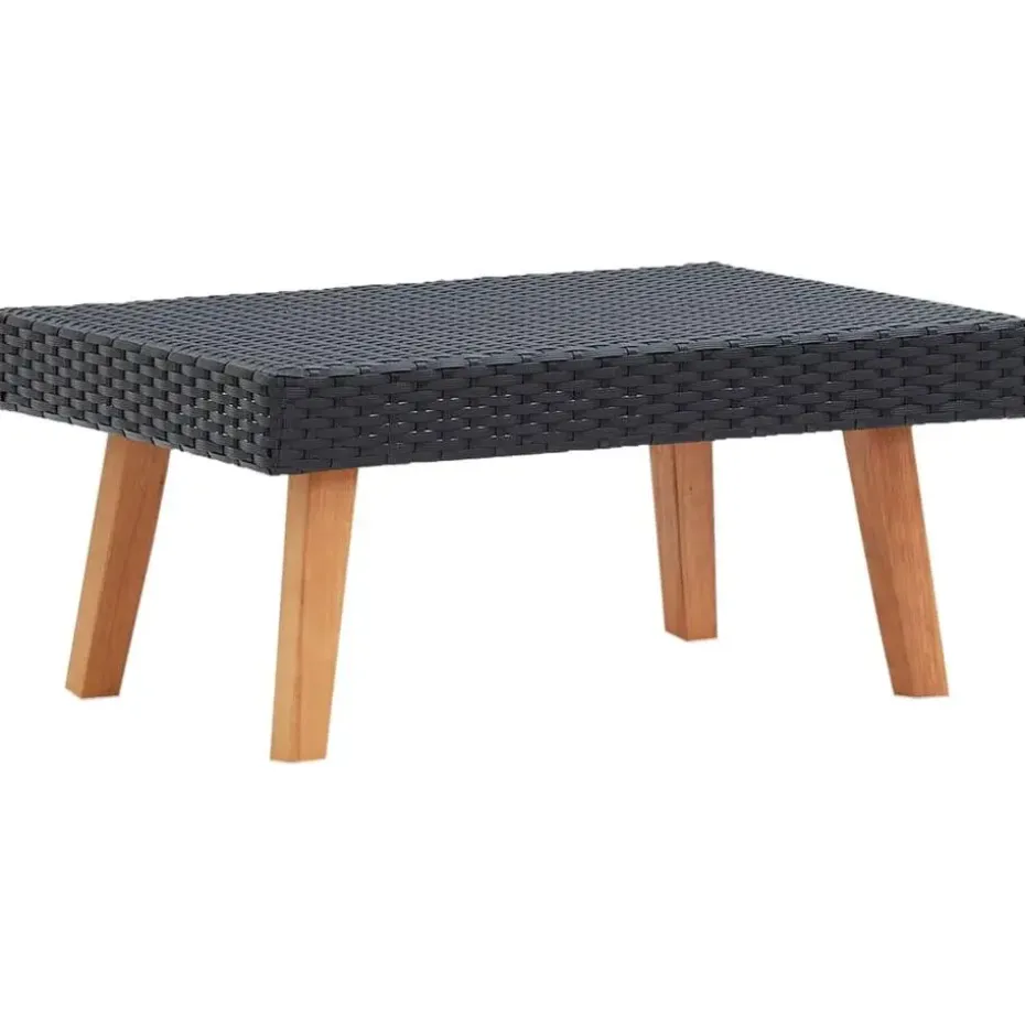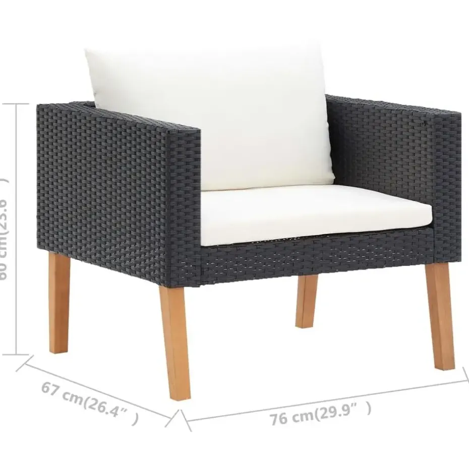 - Materiaal: PE-rattan, gepoedercoat staal, stof (100% polyester) en eucalyptushout met teak-look afwerking