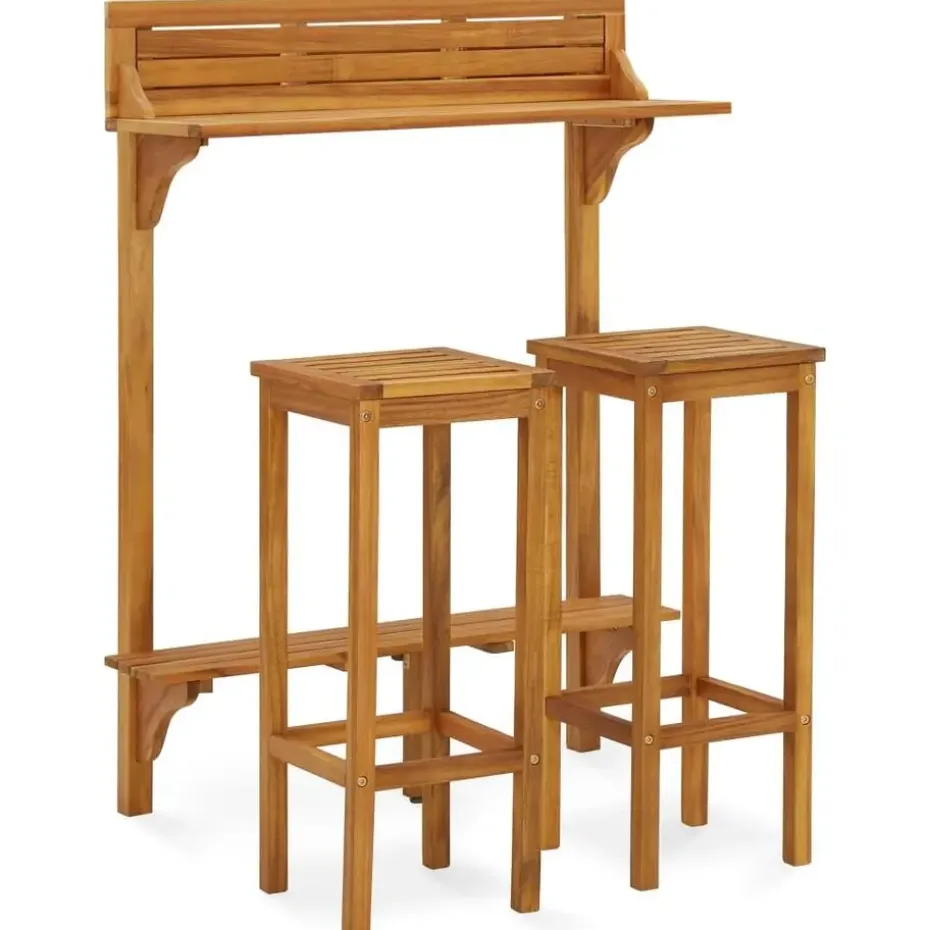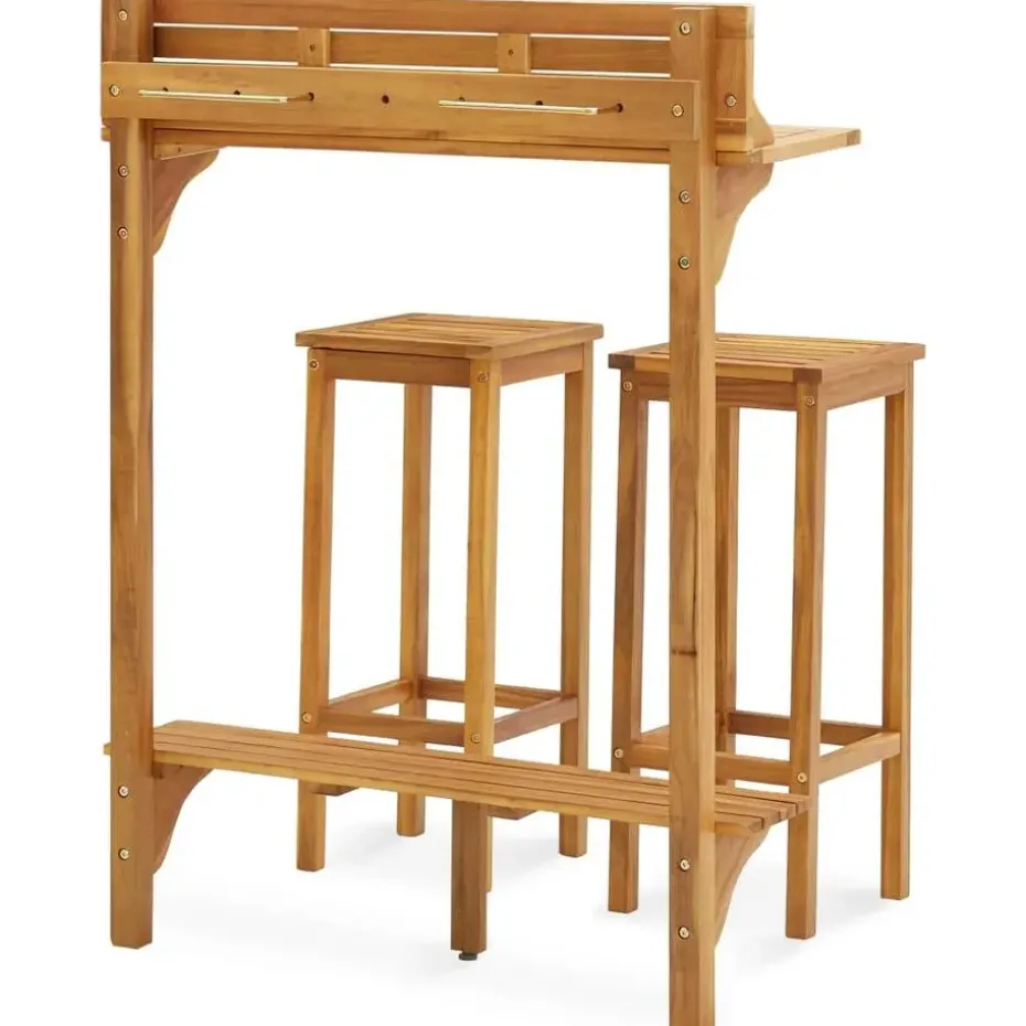 De balkonbarset heeft een massief acaciahouten constructie met een olieafwerking, waardoor hij stabiel en duurzaam is. Dankzij het massief houten tafelblad kan de bartafel dienen als een plantenstandaard voor het weergeven van je potplanten, kruidenplanten en bloemen. De barkruk is voorzien van een voetensteun voor uitstekend zitcomfort.
