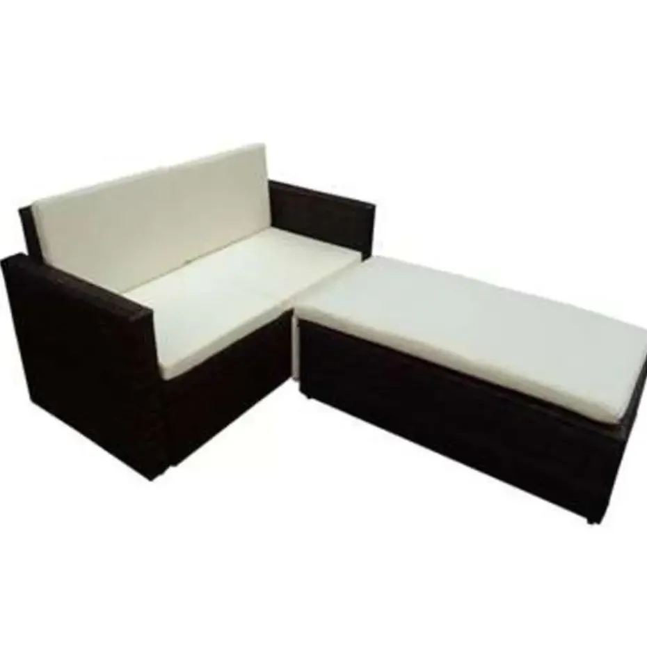 Deze set wordt geleverd met zeer comfortabele, dik gevoerde zit- en rugkussens. De kussenhoezen zijn afneembaar en wasbaar. De kruk heeft een uitklapbare voetsteun en kan in verschillende opstellen met de bank worden gecombineerd, zodat je altijd de meest comfortabele zit- of ligpositie kunt vinden.