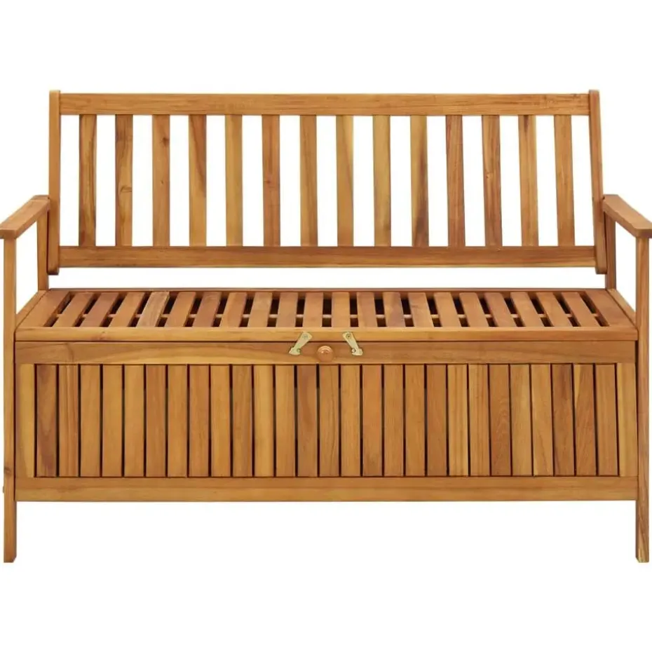De bank is gemaakt van massief acaciahout dat slijtvast en zeer duurzaam is. Het grote opbergvak onder de zitting biedt voldoende ruimte om verschillende huishoudelijke artikelen binnen handbereik en netjes geordend te houden. De armleuningen en de rugleuning dragen bij aan het zitcomfort van de bank.