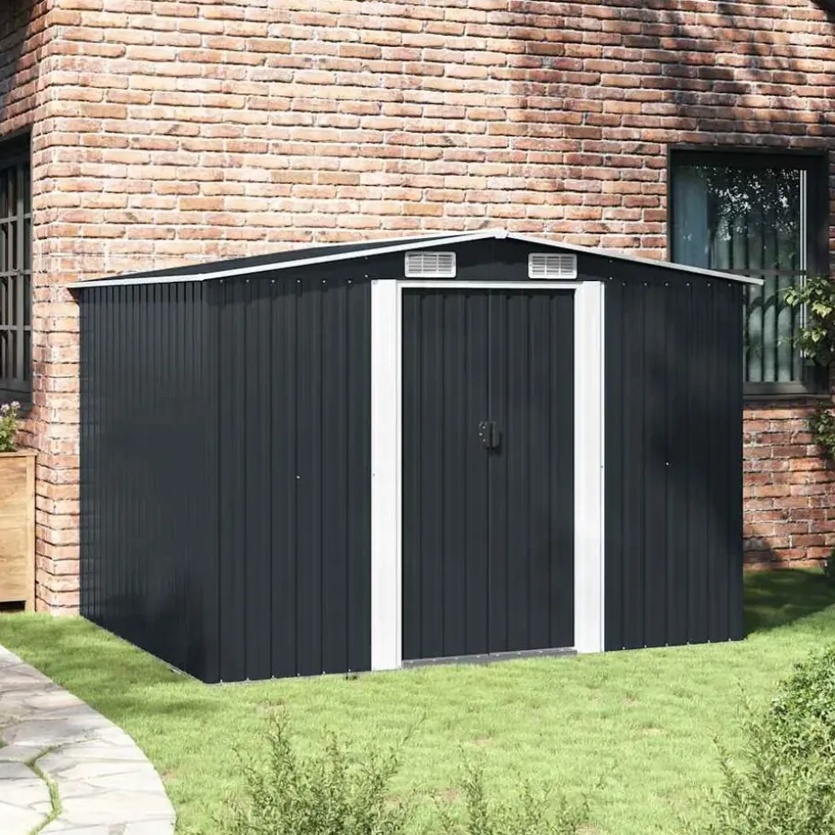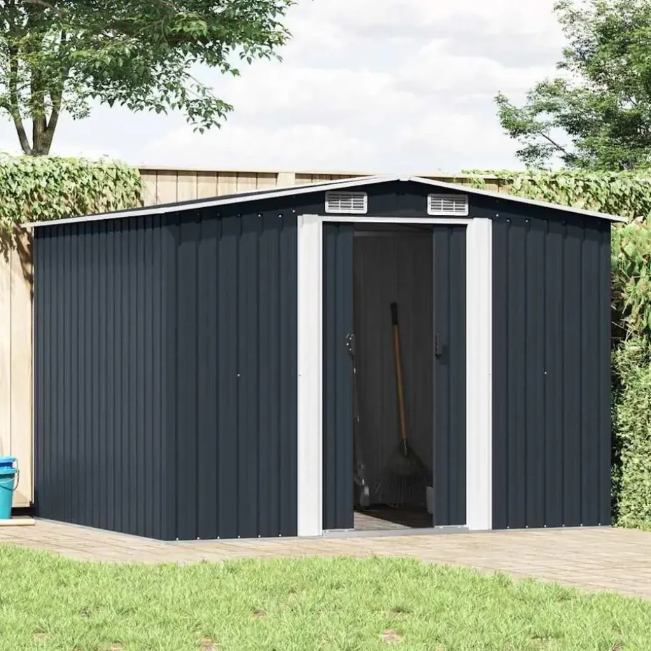 - Praktisch ontwerp: Deze opbergschuur heeft 4 ventilatieopeningen, 2 aan de voorkant en 2 aan de achterkant, voor uitstekende ventilatie. De dubbele schuifdeuren aan de voorkant zorgen voor gemakkelijke in- en uitgang.