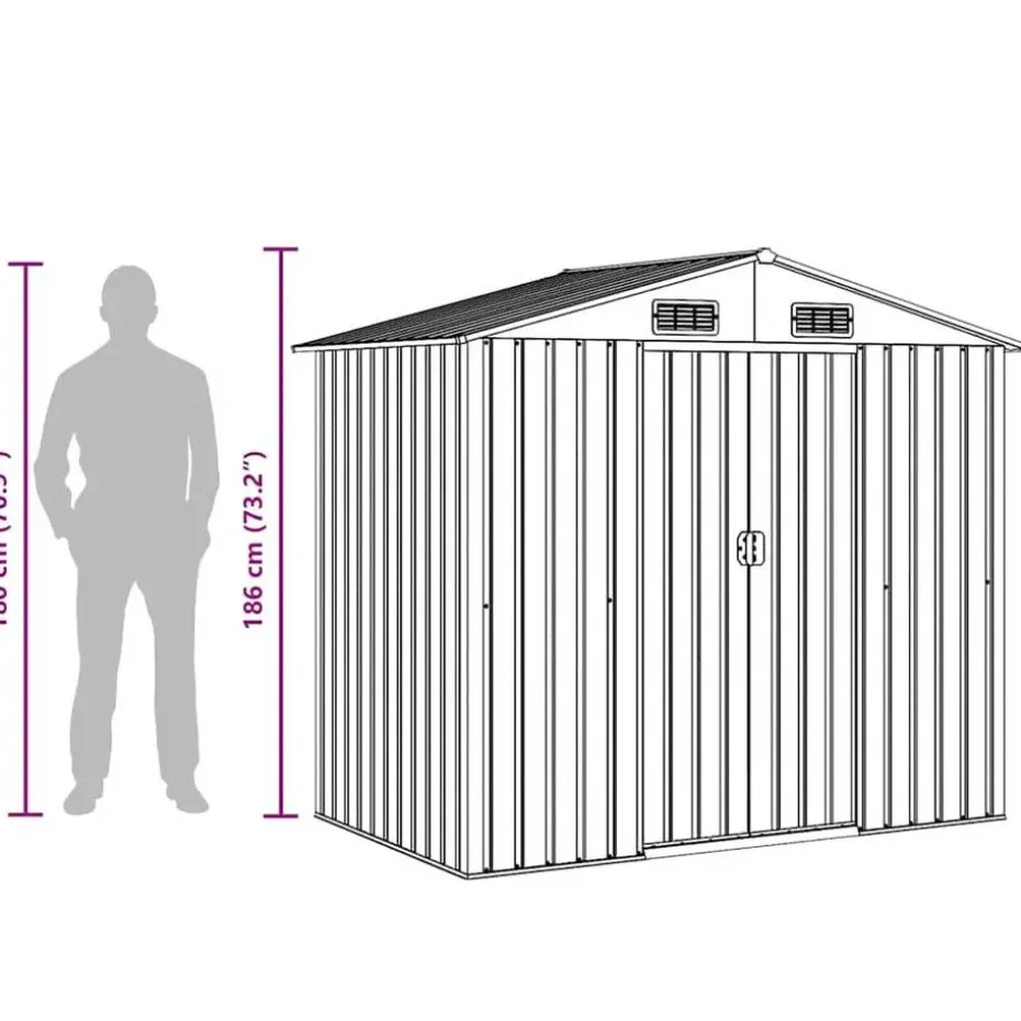 De schuur heeft 4 ventilatiepunten, 2 aan de voorkant en 2 aan de achterkant, waardoor goede ventilatie is gewaarborgd. De dubbele schuifdeur aan de voorkant zorgt ervoor dat je er gemakkelijk in en uit kunt.