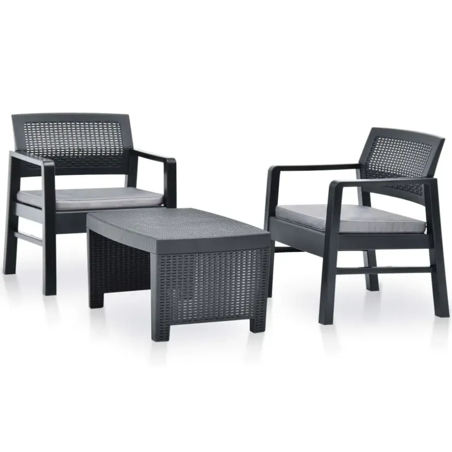 Deze loungeset is geschikt voor buitengebruik dankzij zijn massieve maar toch lichtgewicht kunststof materiaal, dat duurzaam, weerbestendig en gemakkelijk te reinigen is. De zitkussens, gemaakt van polyester, dragen bij aan het comfort van de armstoelen. De tuinmeubelset is eenvoudig te monteren.