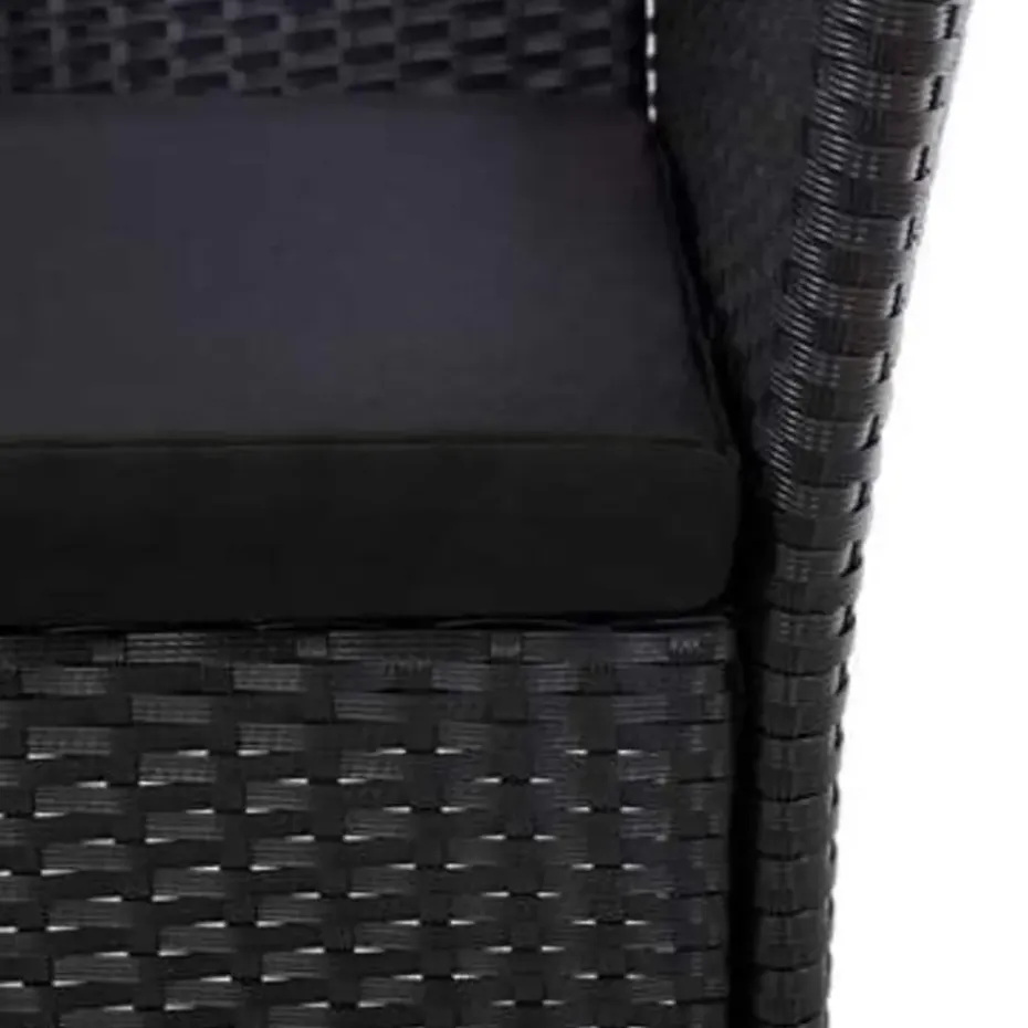 - Materiaal: PE-rattan, massief acaciahout en gepoedercoat staal