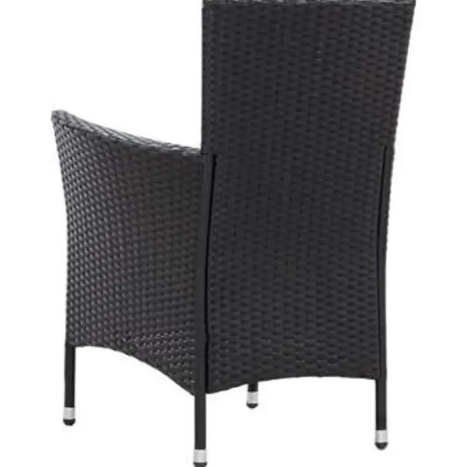 Dankzij de waterbestendige PE-rattan is de eetset gemakkelijk te reinigen, slijtvast en geschikt voor dagelijks buitengebruik. De gepoedercoat stalen frames zorgen voor stabiliteit en garanderen een uitstekende duurzaamheid. De levering bevat een eettafel met massief acaciahouten blad die bij onze elegante stoelen past. De dik gevoerde, afneembare kussens met schuimvulling bieden het ultieme zitcomfort. De onderhoudsarme polyester kussenhoezen kunnen eenvoudig verwijderd en gewassen worden. Deze tuinset is eenvoudig te monteren.