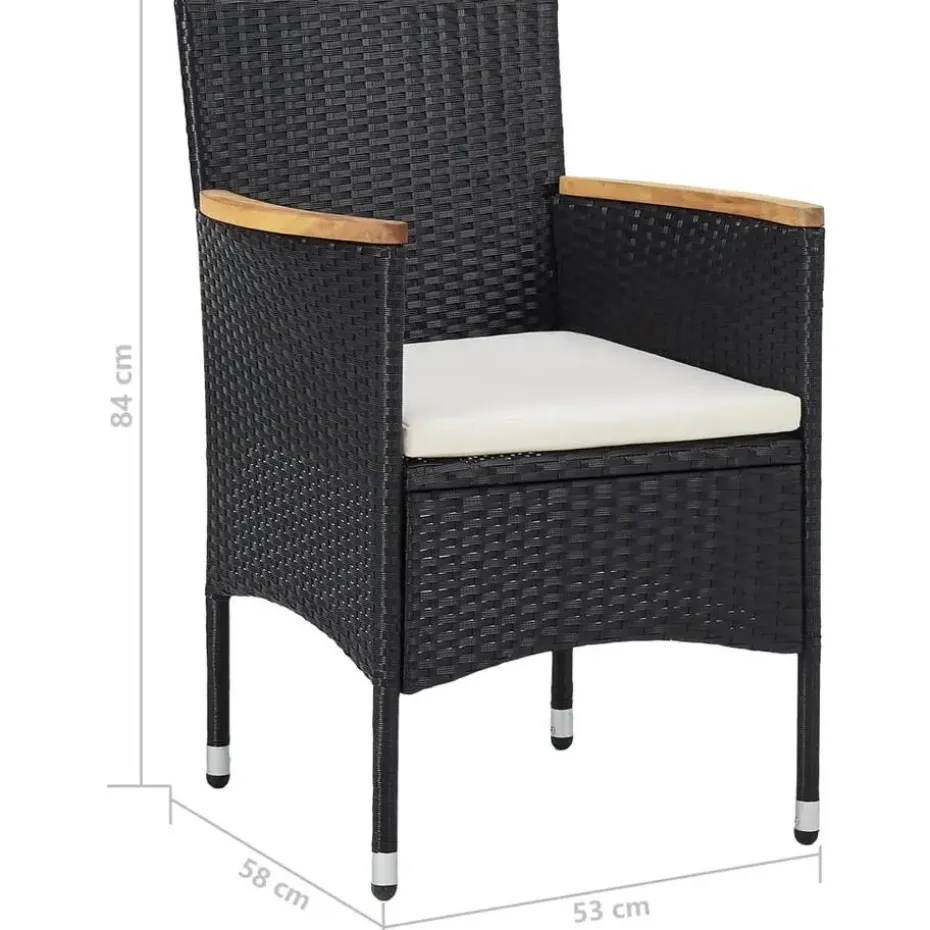 - Materiaal: poly rattan, acaciahout met olieafwerking en gepoedercoat staal