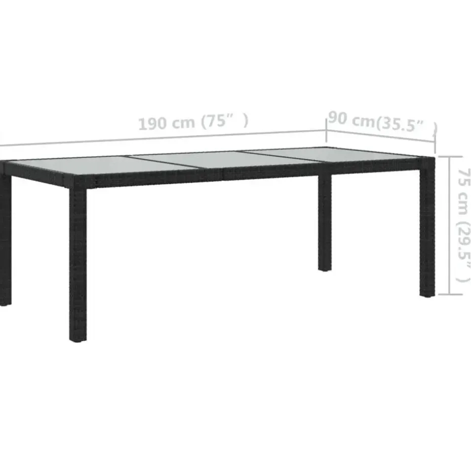 - Materiaal: poly rattan, gepoedercoat staal en gehard glas