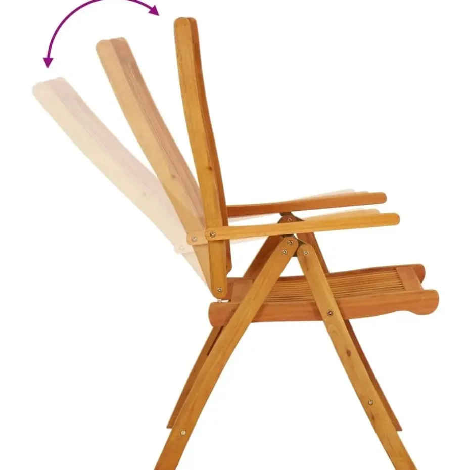 - Comfortabele ligposities: de tuinstoelen hebben gebogen zittingen en rugleuningen. Daarnaast kan de rugleuning die in 5 standen versteld worden, zodat je altijd een comfortabele positie kunt vinden.