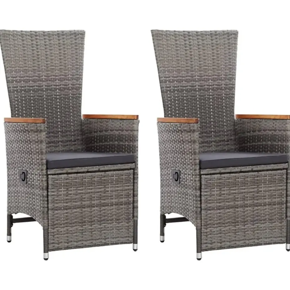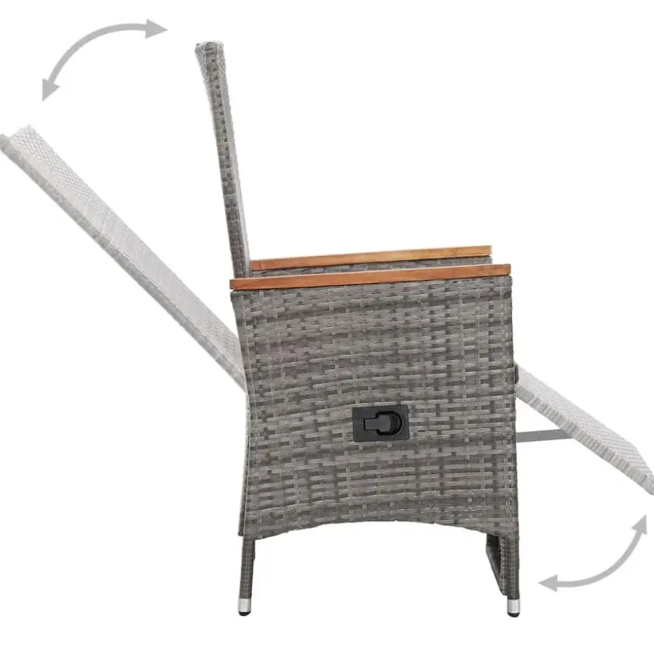 Het meubilair is gemaakt van weer- en waterbestendig PE-rattan en is gemakkelijk schoon te maken, slijtvast en geschikt voor dagelijks gebruik. De gepoedercoat stalen frames maken ze sterk en stevig. De armleuningen zijn gemaakt van acaciahout, een tropisch hardhout dat een rustieke charme heeft. Dankzij het verstelbare ontwerp en het gasveermechanisme kunnen de rugleuning en voetensteun worden aangepast. Door het aanraken van de knop aan de zijkant, leunt de rugleuning achterover en tegelijkertijd beweegt de voetensteun omhoog, voor een comfortabele ligpositie. Dankzij de lichtgewicht constructie zijn de stoelen eenvoudig te verplaatsen.
