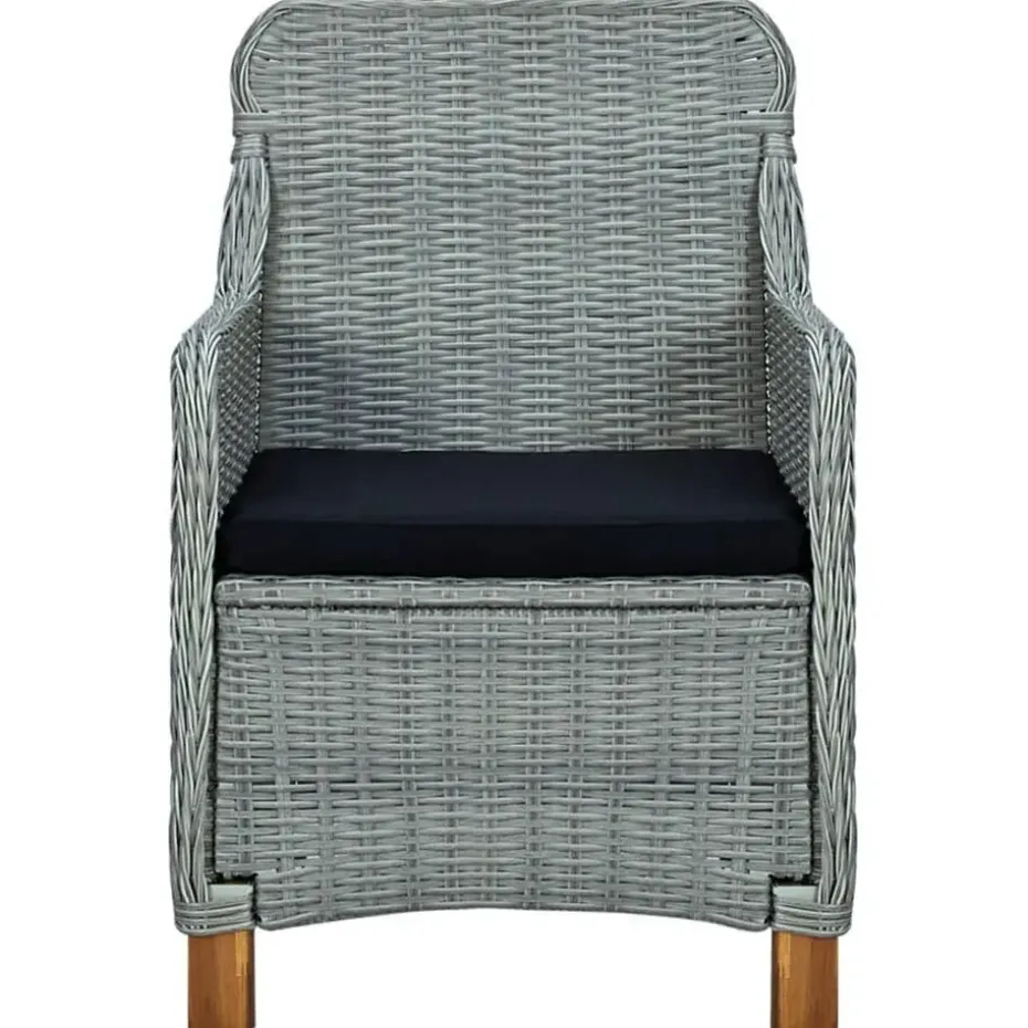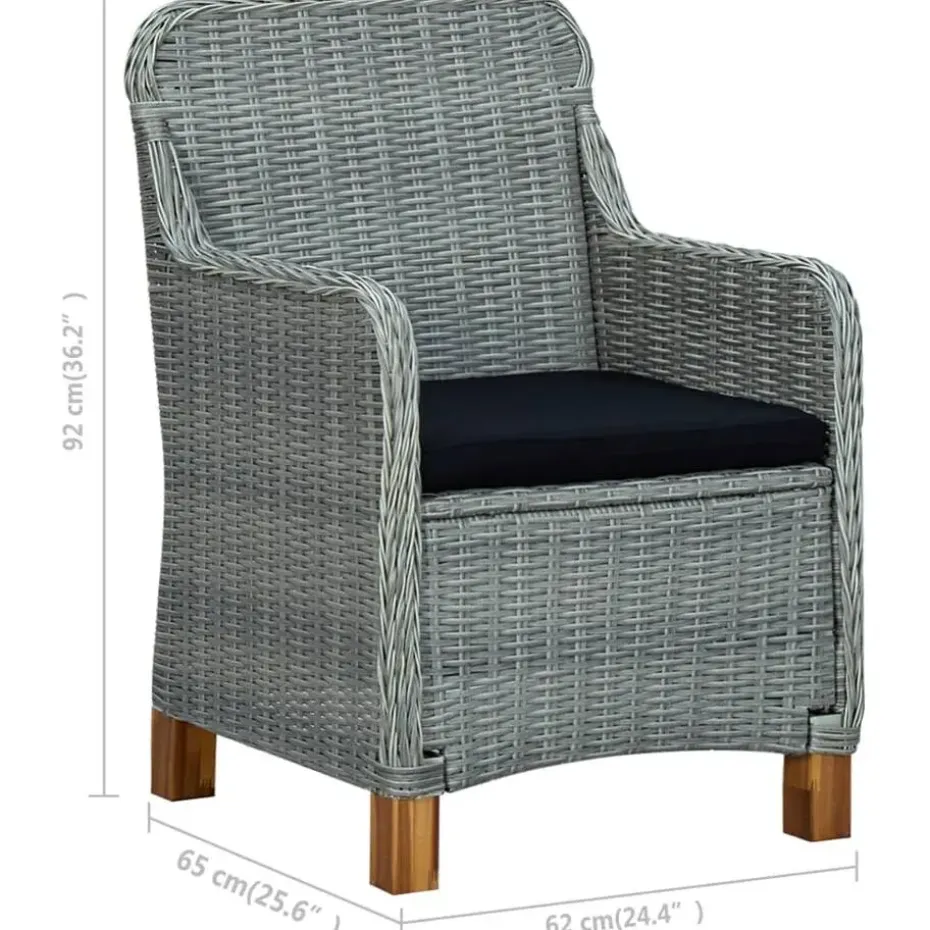 De buitenstoel, met een gepoedercoat stalen frame bedekt met rond PE-rattan, is stevig en gemakkelijk schoon te maken. De dik gevoerde zitkussens bieden extra comfort tijdens het loungen. De kussenhoes heeft een rits waardoor de hoes afneembaar en wasbaar is. Bovendien dragen de massief acaciahouten poten bij aan de stevigheid en stabiliteit. Deze tuinstoelen zijn gemakkelijk te verplaatsen door de lichtgewicht constructie.