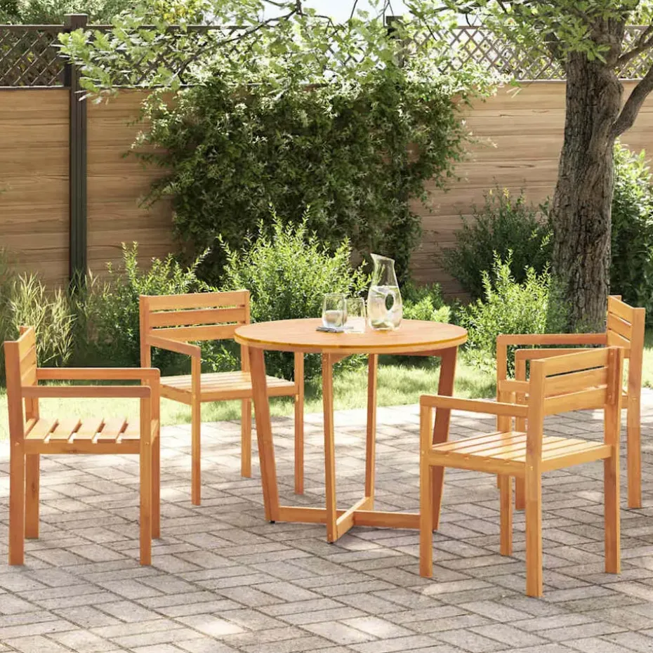 - Robuust en stabiel materiaal: massief acaciahout staat bekend om zijn stevigheid en duurzaamheid, aangevuld met unieke nerfpatronen die de visuele aantrekkingskracht vergroten. De tafel is afgewerkt met een beschermende olielaag en is ontworpen voor gebruik buitenshuis. Hij is bestand tegen de elementen en behoudt tegelijkertijd de prachtige houtnerf.