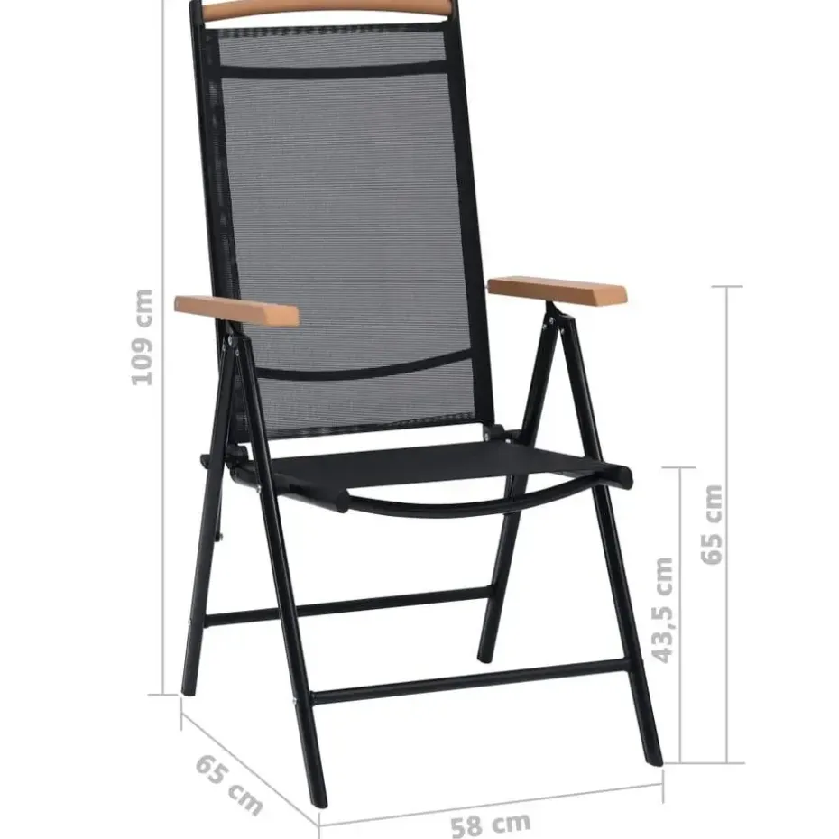 Dankzij het gepoedercoate aluminium frame zijn deze stoelen zeer stevig en duurzaam. De tuinstoelen hebben een zacht aanvoelende zitting en rugleuning van waterbestendig textiel en zijn verstelbaar in 7 posities. Je kan dus altijd de meest comfortabele positie vinden. De armleuningen en stang op de rugleuning dragen bij aan de stijlvolle uitstraling van de stoel. Dankzij de lichtgewicht constructie kan je de stoelen moeiteloos verplaatsten. De stoelen kunnen ingeklapt worden wanneer ze niet in gebruik zijn, om ruimte te besparen.