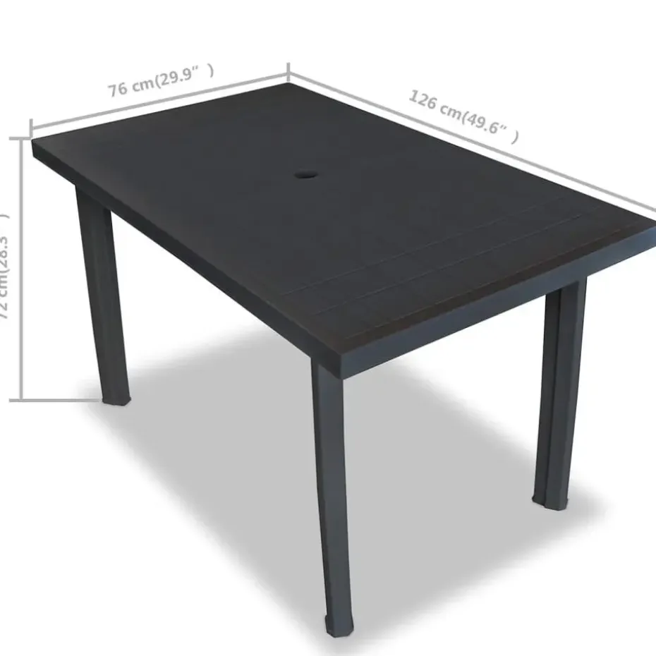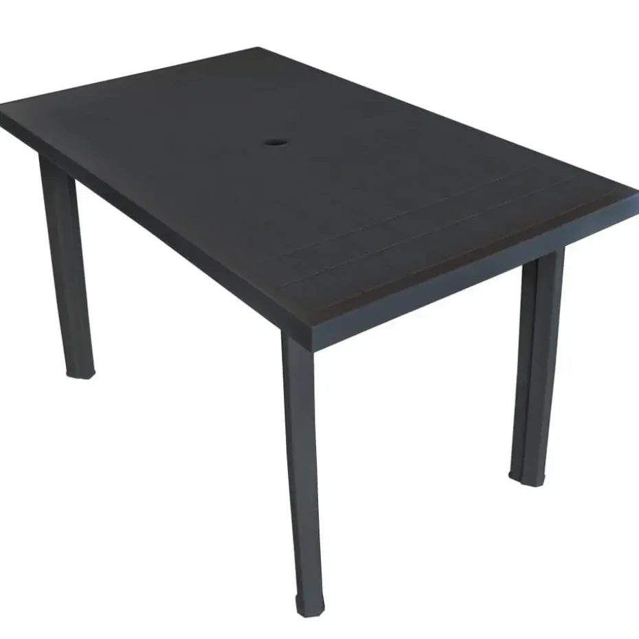 De buitentafel is gemaakt van duurzaam kunststof, dit maakt hem weerbestendig en makkelijk schoon te maken. De tafel heeft een parasolgat zodat je een parasol met de tafel kunt gebruiken en koel in de schaduw kunt zitten. Hij is ook lichtgewicht, hierdoor is hij makkelijk te verplaatsen. Montage is erg eenvoudig.