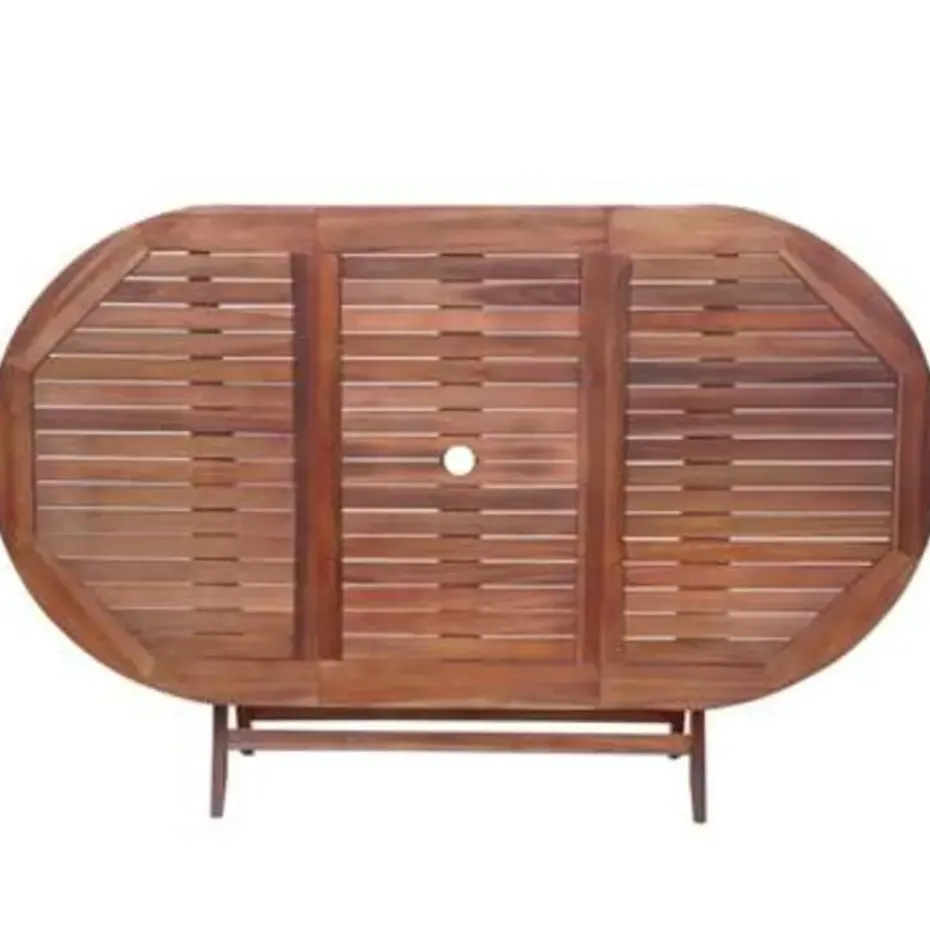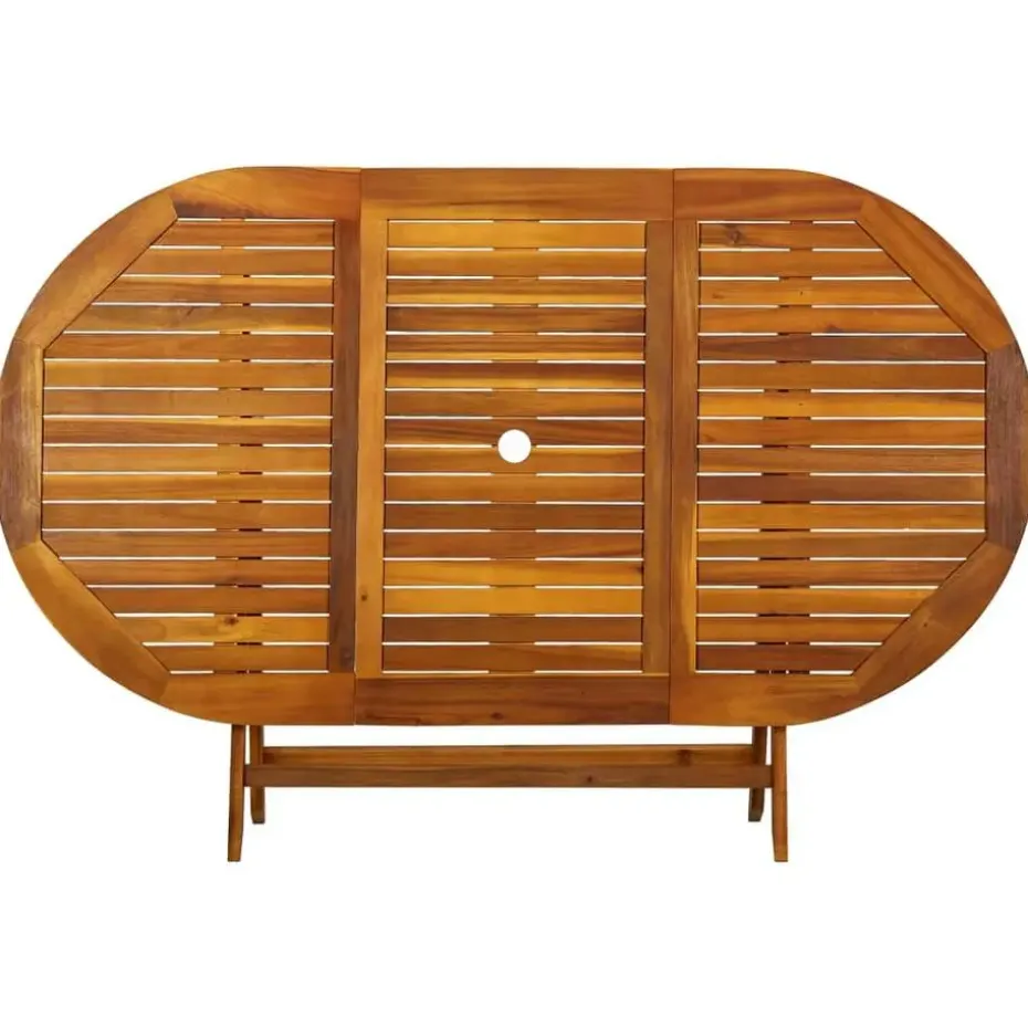 Deze stijlvolle en eigentijdse houten tuinset bestaat uit 1 ovale tafel en 6 inklapbare stoelen. Hij is de perfecte keuze om lekker buiten te eten in je eigen tuin.
