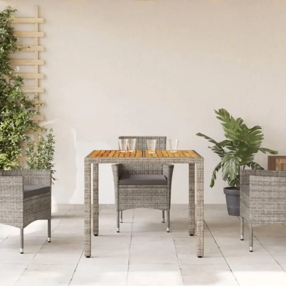 - Materiaal: PE-rattan, gepoedercoat staal en massief acaciahout met olieafwerking