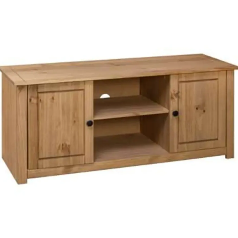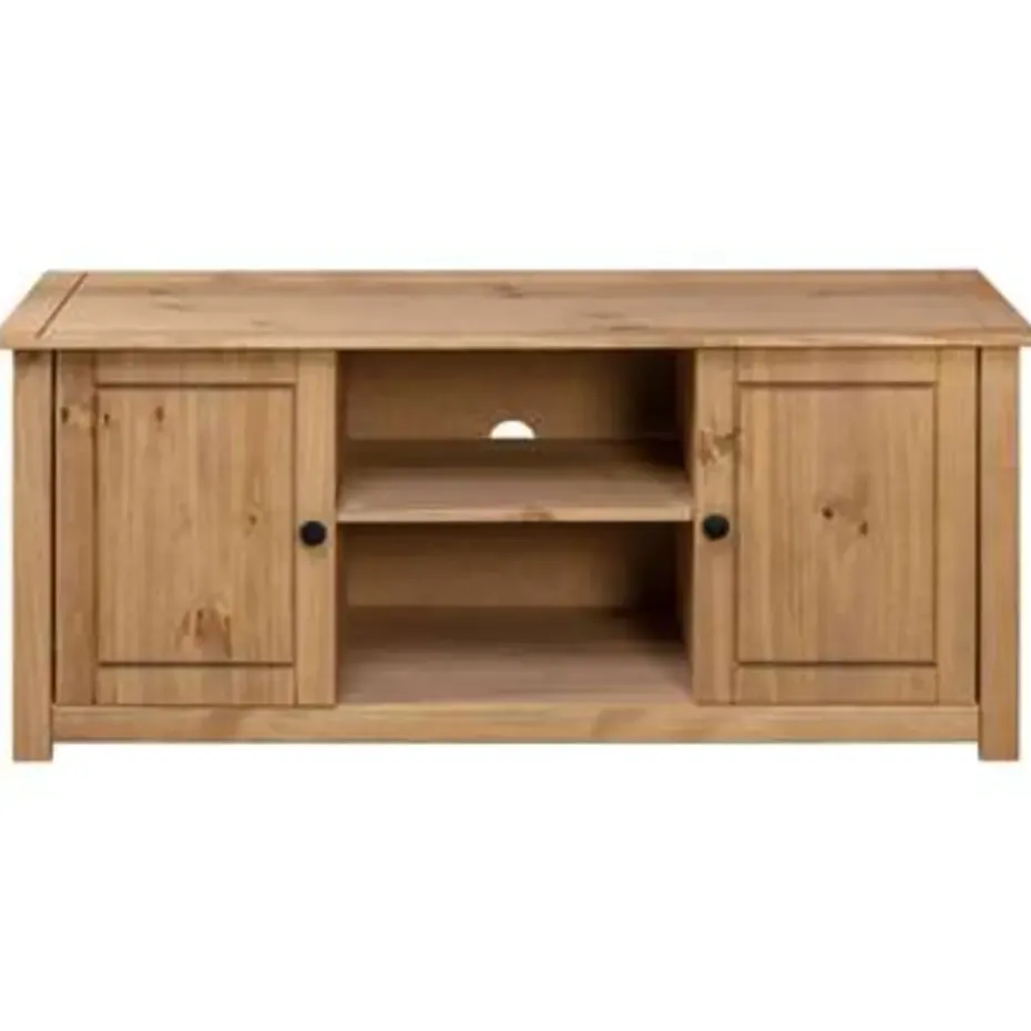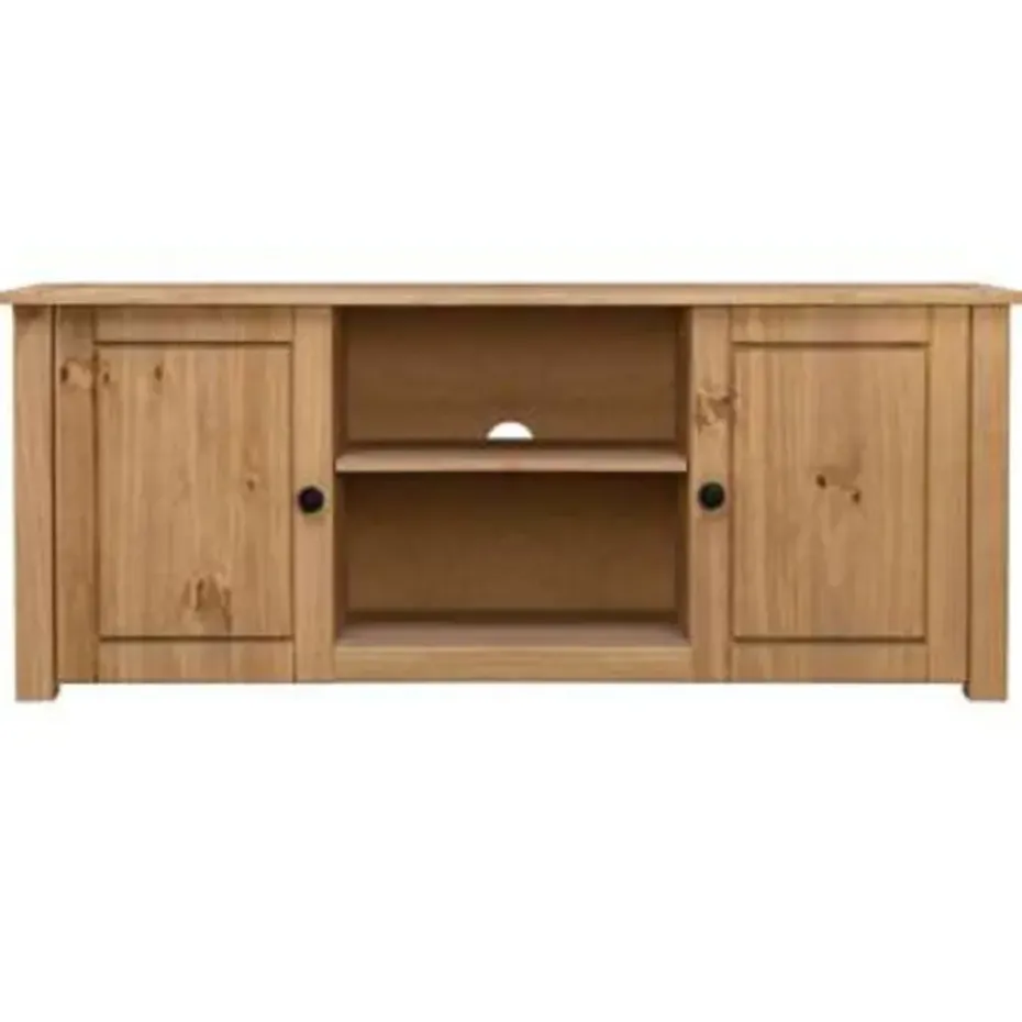 Dit televisiemeubel is gemaakt van massief grenenhout waardoor het zeer stevig en duurzaam is. Het elegante ontwerp maakt van het dressoir een gebruiksvriendelijke en buitengewoon decoratieve toevoeging aan je huis. De stereokast heeft 4 vakken waarvan 2 met deuren, die voldoende ruimte bieden om allerlei kleinere spullen, zoals sleutels, notitieblokken en pennen, georganiseerd en binnen handbereik te houden. Het grote blad is ideaal voor het plaatsen van je televisie, router, multimedia-apparaten en voor het neerzetten van decoratieve voorwerpen.