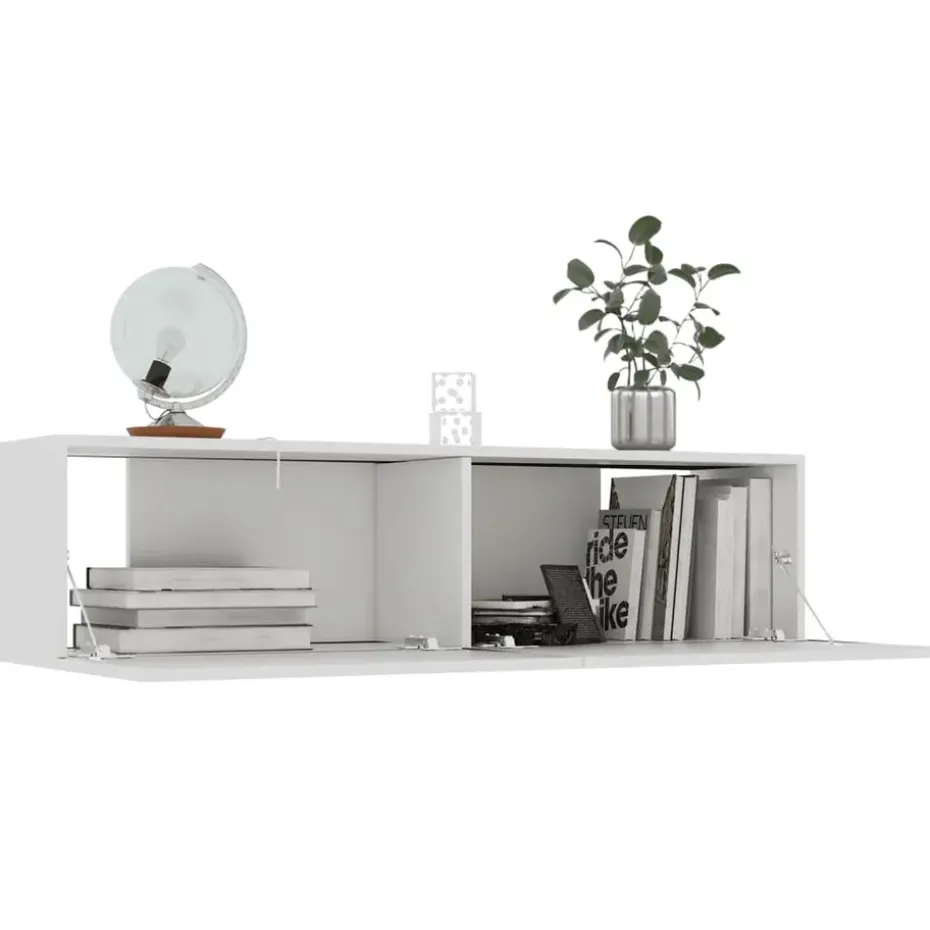 Dit chique televisiemeubel kan aan de muur worden bevestigd om een tijdloze aanvulling op je huis te zijn. Het heeft 2 vakken voor het opbergen van tijdschriften, dvd’s en andere spullen. De kast is ontworpen met neerklapbare deuren voor eenvoudige toegang. Deze tv-kast is eenvoudig te reinigen met een vochtige doek.