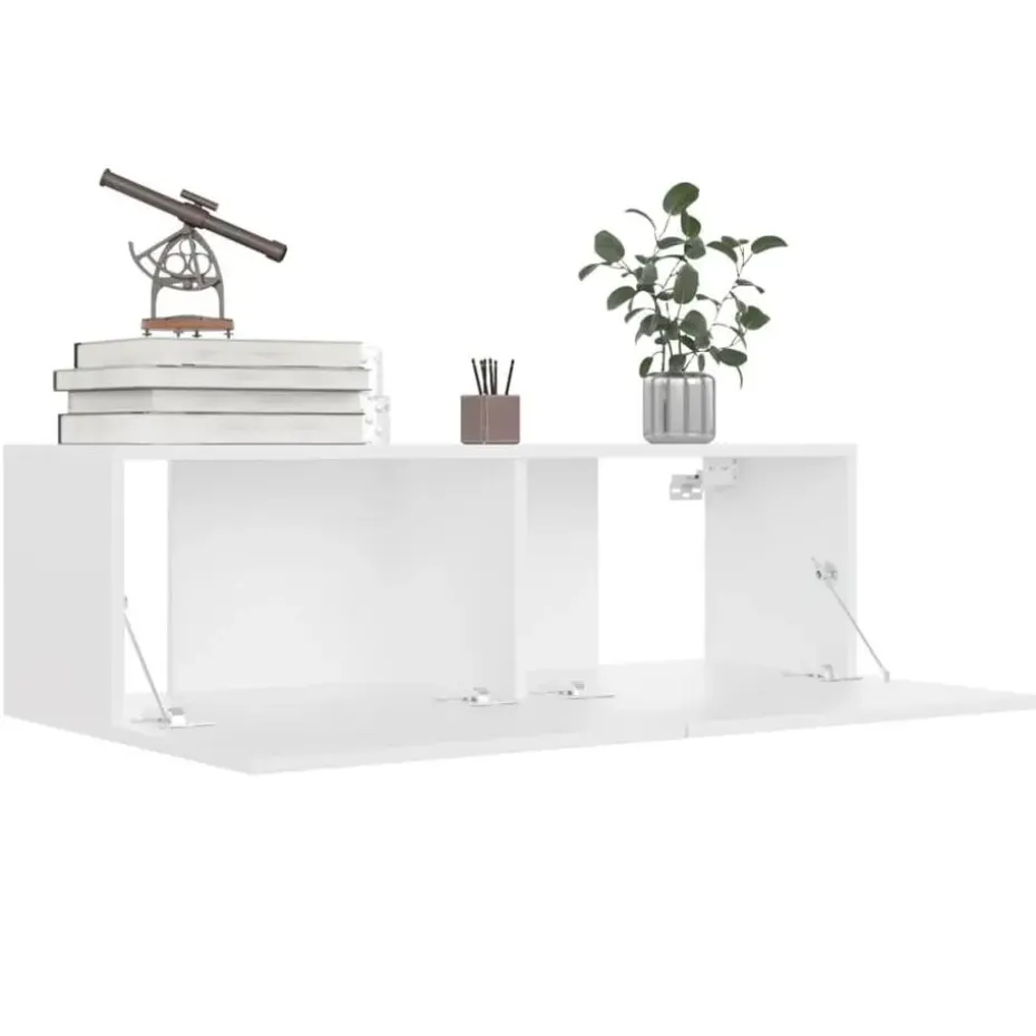 Dit chique televisiemeubel kan aan de muur worden bevestigd om een tijdloze aanvulling op je huis te zijn. Het heeft 2 vakken voor het opbergen van tijdschriften, dvd’s en andere spullen. De kast is ontworpen met neerklapbare deuren voor eenvoudige toegang. Deze tv-kast is eenvoudig te reinigen met een vochtige doek.