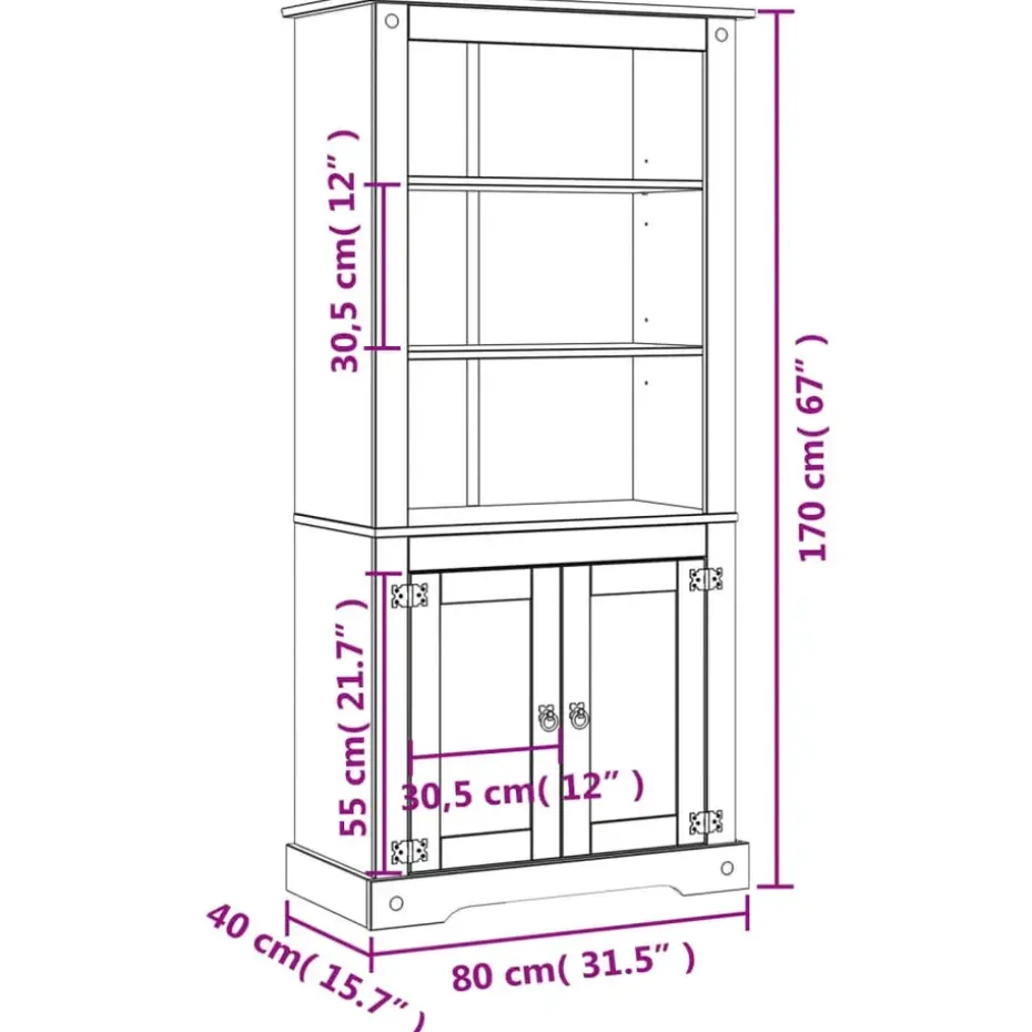 Deze hoogwaardige houten wandkast is een meubel in de Mexicaanse -stijl. Het gewaxte grenenhout met zwart metalen details straalt een rustieke Mexicaanse charme uit, die de kast een geweldige aanvulling op je woonkamer, eetkamer of hal maakt. De kast kan ook worden gebruikt als vitrinekast of boekenkast.
