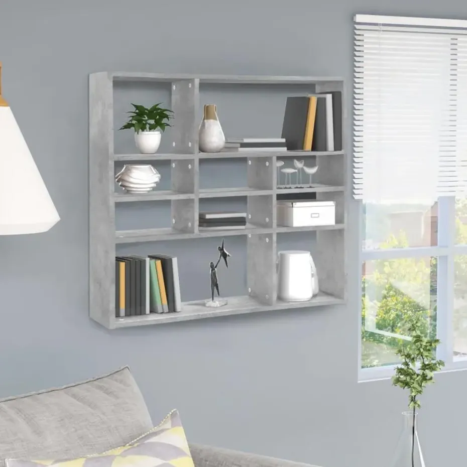 Dit wandmeubel is gemaakt van bewerkt hout en is stevig en duurzaam. Het heeft 10 open vakken zodat er voldoende plek is voor het plaatsen van boeken, verzamelobjecten, foto’s, prijzen, potplanten, enz. Bovendien is dit meubel gemakkelijk schoon te maken met een vochtige doek.