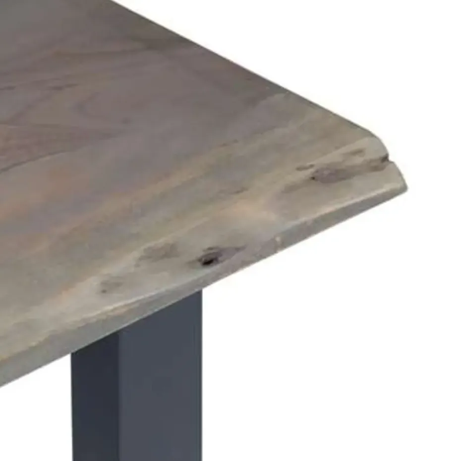- Materiaal: massief acaciahout met een grijze afwerking (tafelblad) en gepoedercoat ijzer (poten)