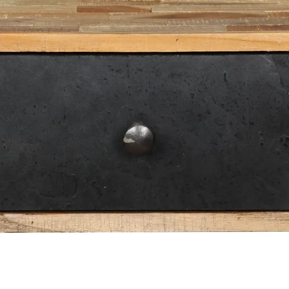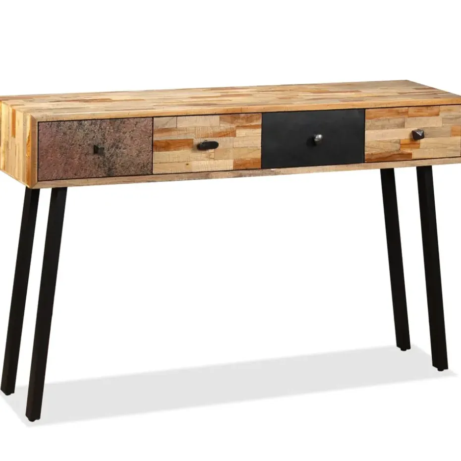 De tafel is gemaakt van gerecycled teakhout, dat massief, stabiel, duurzaam en mooi is. Het stevige houten tafelblad biedt een stabiele en stevige plaats waarop je drinken, vazen, fruitmanden of decoraties kan plaatsen. Kleine voorwerpen, zoals sleutels, notitieblokken, pennen en andere snuisterijen, kunnen in de 4 ruime lades worden bewaard. Het gemarmerde ladeoppervlak draagt bij aan de unieke vintage stijl van de tafel. Elke stap van het productieproces wordt met grote zorg uitgevoerd, of het nu gaat om in elkaar zetten, polijsten of lakken. Montage is eenvoudig.