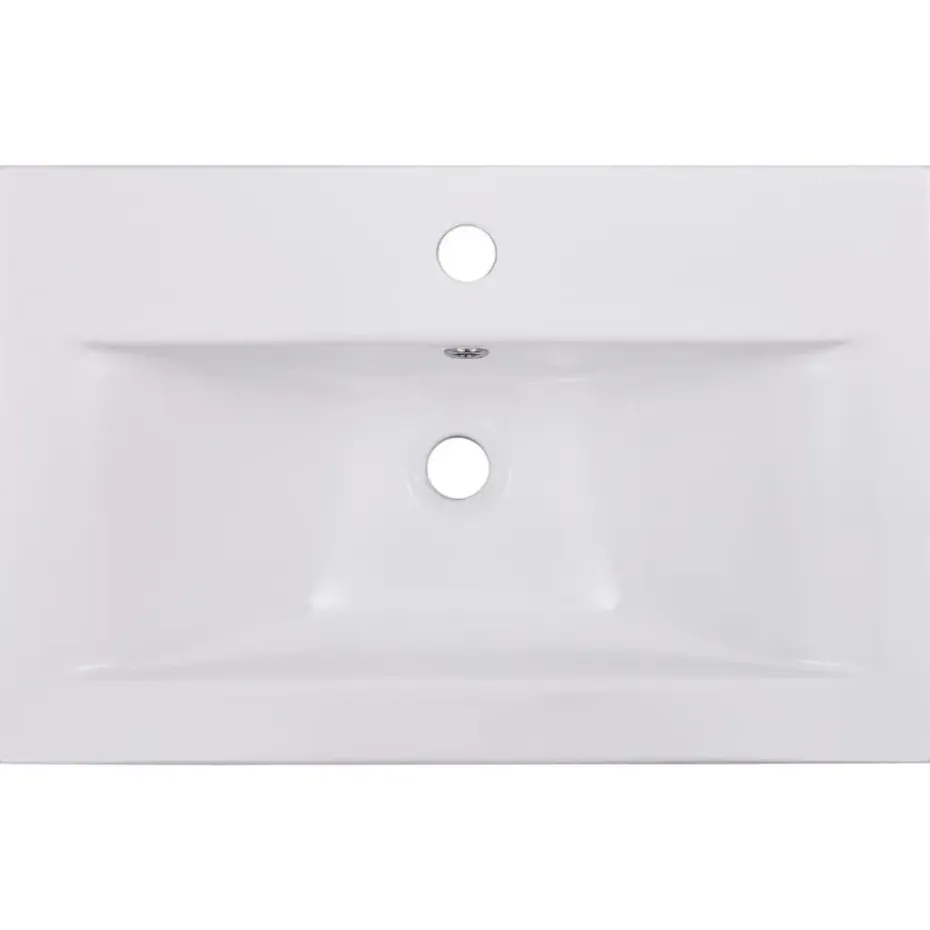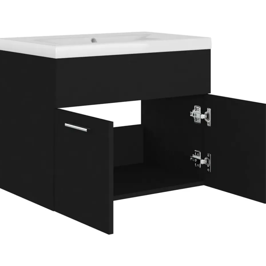 De kast is gemaakt van spaanplaat, waardoor hij stevig en stabiel is. De opbergkast heeft 1 vak en 2 deuren, waardoor er voldoende ruimte is om spullen op te bergen. Hij past perfect onder de gootsteen en maakt het opbergen in de badkamer heel handig. De wastafel is gemaakt van keramiek en dient niet alleen als product voor dagelijks gebruik, maar ook als versiering in je leefruimte. Dankzij zijn trendy en eigentijdse ontwerp past deze wastafel beslist in elk interieur. De overloop zorgt ervoor dat de bak nooit over kan lopen. Het geglazuurde oppervlak geeft een modern en elegant tintje aan deze wastafel. Daarnaast zijn de kast en wastafel eenvoudig schoon te maken met een vochtige doek.