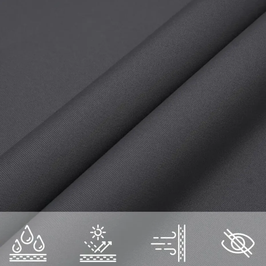 Het zonnezeil is gemaakt van PU-gecoat oxford stof en beschermt je tegen direct zonlicht en regen. De stof is speciaal behandeld zodat het schimmel- en uv-bestendig is.