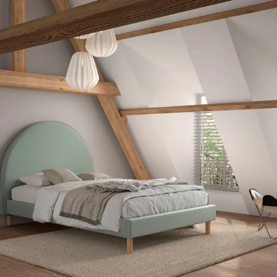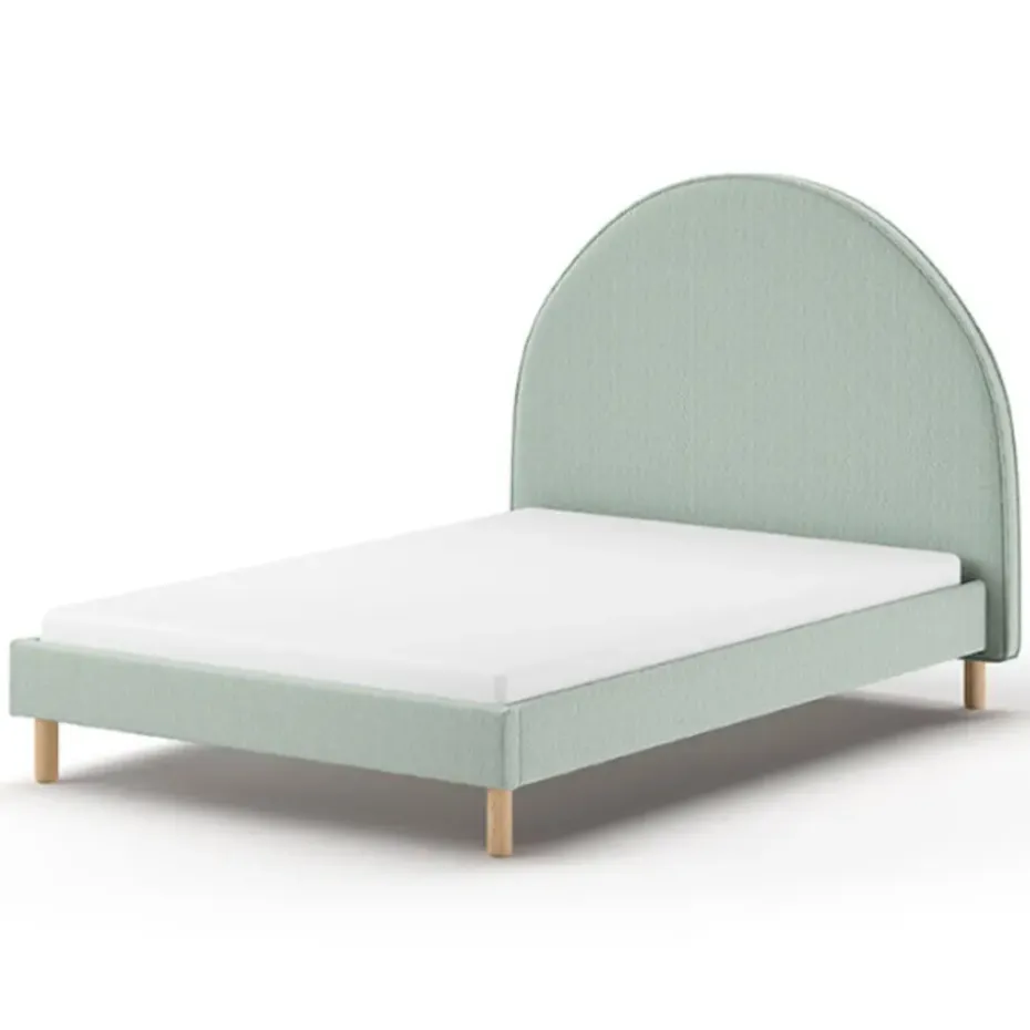 Op zoek naar een bed dat niet alleen lekker slaapt, maar er ook leuk uitziet? Dit Vipack twijfelaar bed is bekleed met een zachte groene bouclé stof en heeft een opvallend maanvormig hoofdbord. Dat maakt het bed extra vrolijk en zorgt meteen voor een speelse sfeer in de slaapkamer.