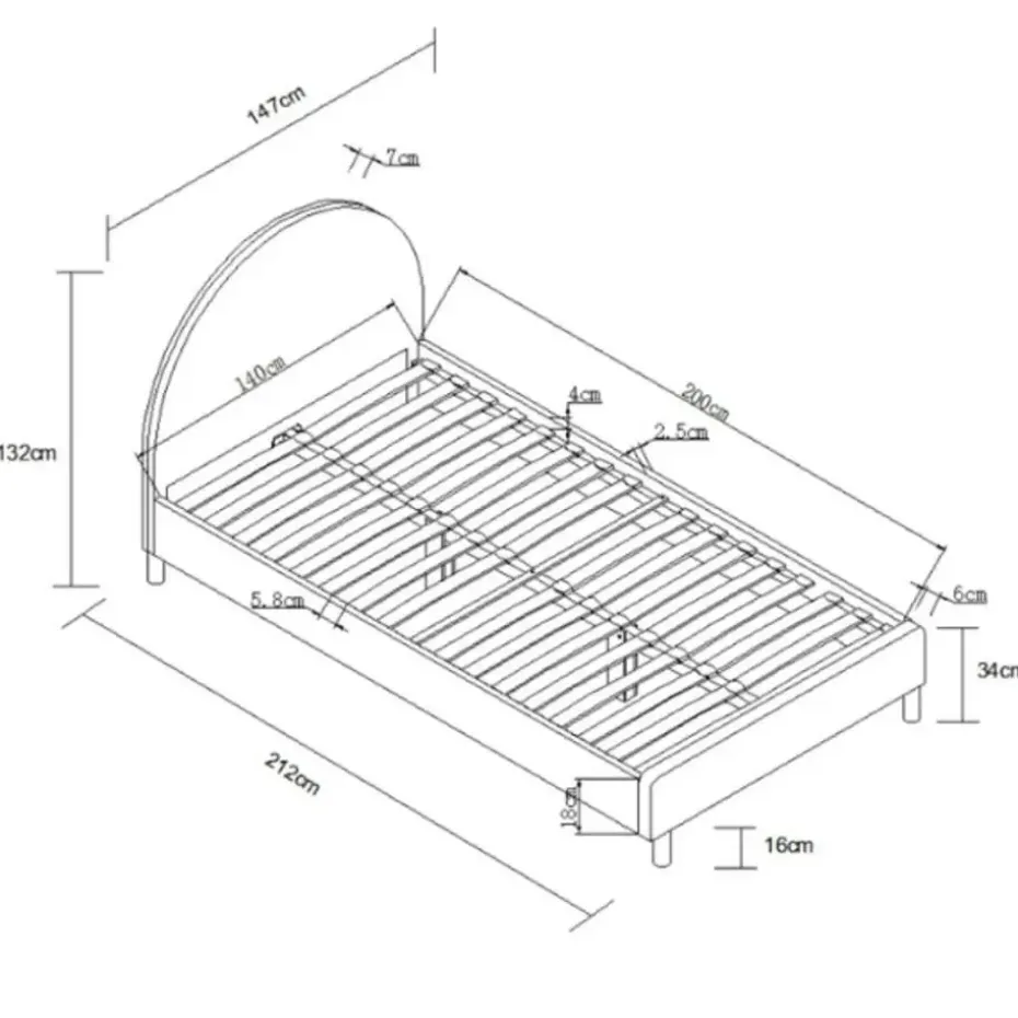 - Afmetingen bed: 147x214x115 cm (bxlxh)