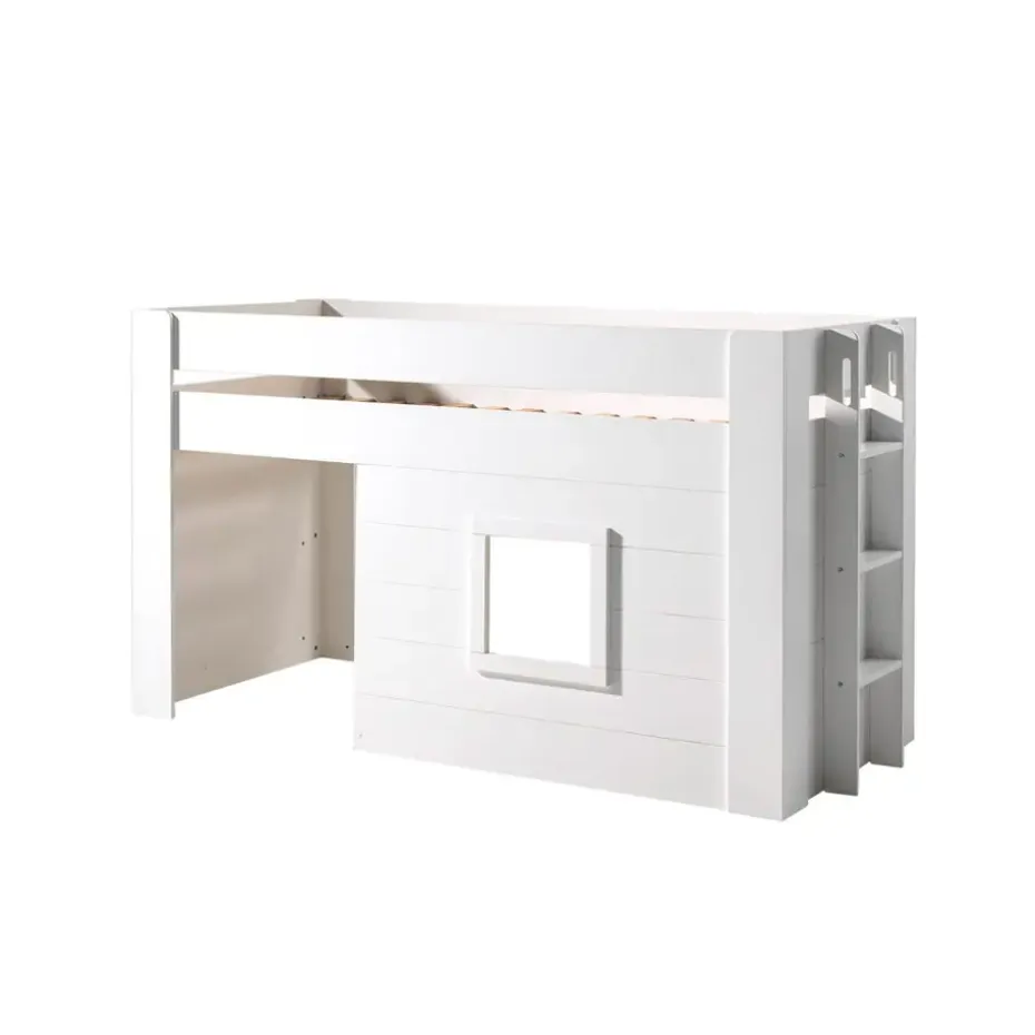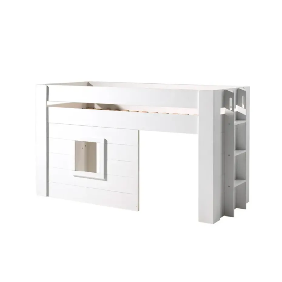 Vipack halfhoogslaper Noah is een modern kinderbed met vele mogelijkheden. De hoogslaper heeft namelijk een slaapgedeelte, maar onder het bed is nog voldoende ruimte om heerlijk te spelen en een eigen, gezellige ruimte te creëren. Halfhoogslaper Noah is wit van kleur en gemaakt van een combinatie van grenenhout en MDF, waardoor het stevig en stabiel is. Noah is geschikt voor een matrasmaat van 90×200 cm. De totale afmeting van het bed is 213,6x96x120,1 cm. Een ideale aanvulling voor op de kinderkamer!