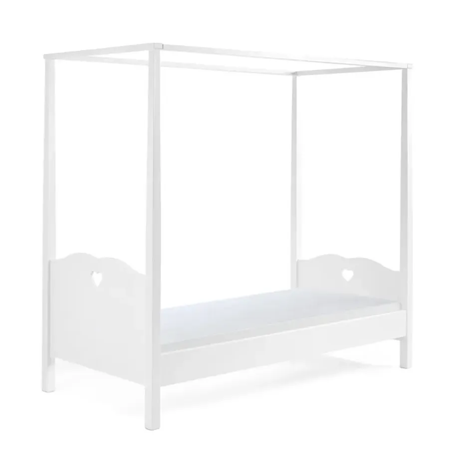 Vipack hemelbed Amori laat je een koningin voelen binnen de muren van je eigen slaapkamer. Dit bed is vervaardigd uit een combinatie van E1 MDF en massief grenen. Deze combinatie zorgt voor een kwalitatief en erg sterk geheel. De matrasmaat van dit hemelbed is standaard (90×200 cm). De Amori-collectie is een uitgebreide romantische collectie slaapkamermeubelen voor kinderen. Stel zelf de ultieme en complete kinder- of tienerkamer samen en creëer eenheid en rust in de slaapkamer door meubelen uit dezelfde serie te gebruiken.
