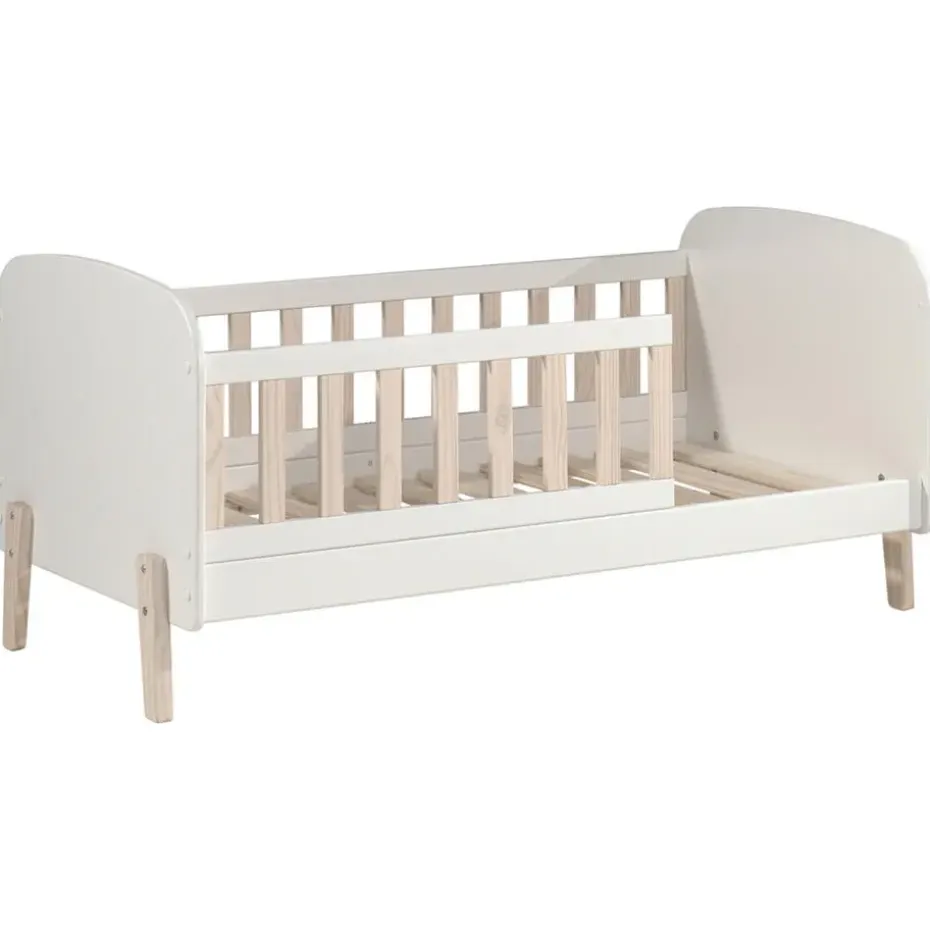 Vipack peuterbed Kiddy heeft een Scandinavische uitstraling en uitvalbeveiliging. Het bedje is gemaakt van een combinatie van MDF en grenenhout. Het bed is wit en de pootjes en uitvalbeveiliging hebben een natuurlijke houtkleur. Doordat de pootjes schuin zijn gemonteerd, ziet het bed er speels en knus uit. Een echte aanvulling op de kinderkamer! Bed Kiddy is geschikt voor een matrasmaat van 70×140 cm. De totale afmeting van dit bed is 148,2x68x77 cm.