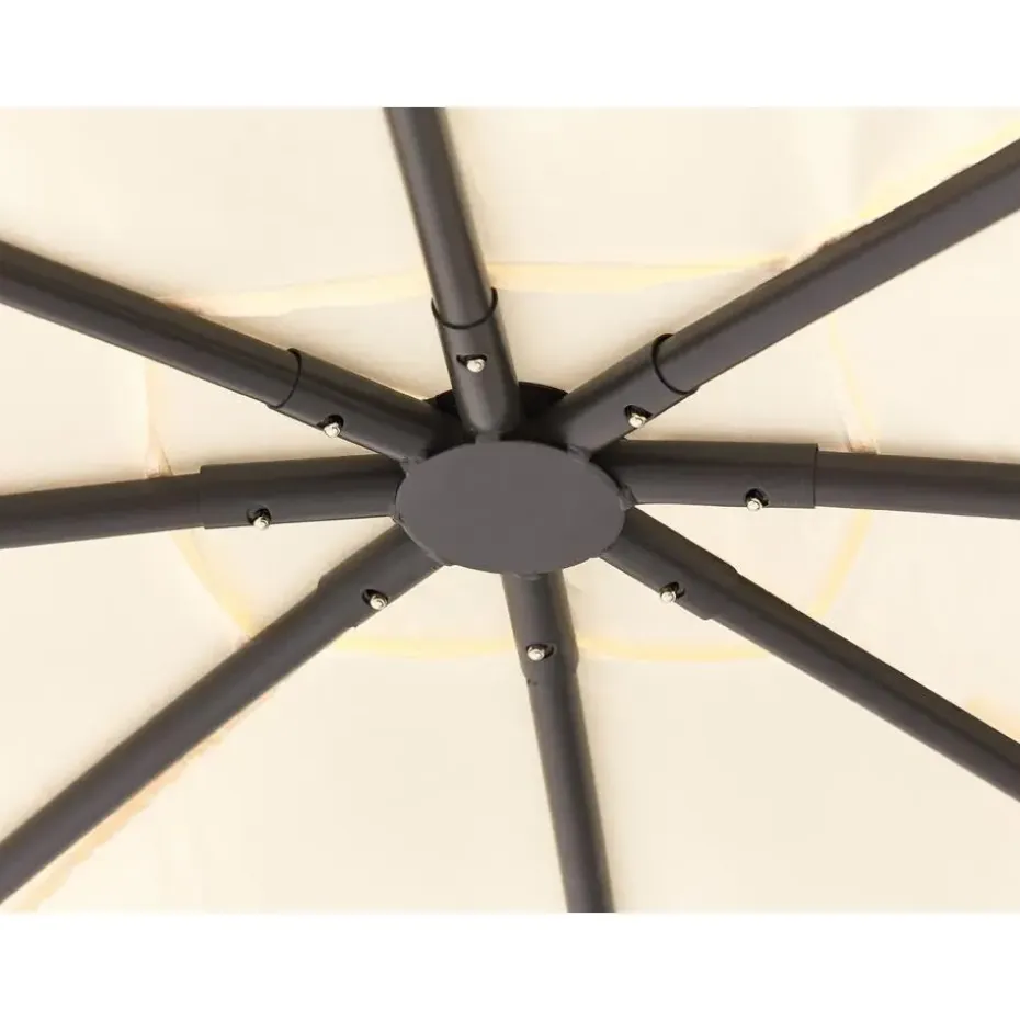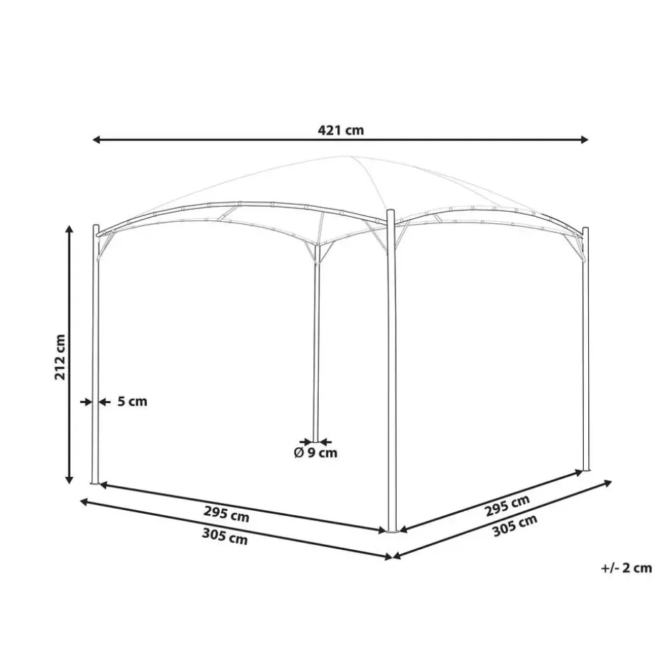 Extra informatie: Om veiligheidsredenen moet het paviljoen aan de grond worden vastgezet. De set bevat metalen haringen om het stuk op het gazon te bevestigen, maar het bevestigingsmateriaal voor andere oppervlakken is niet inbegrepen.