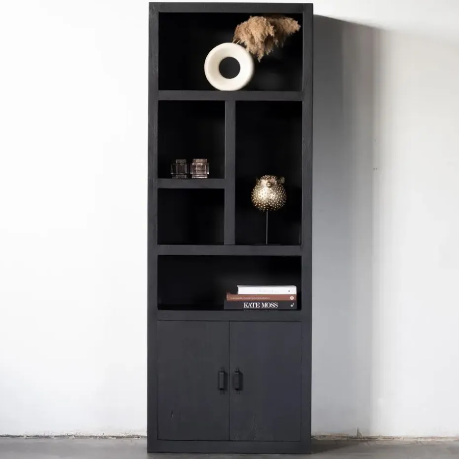 Wandkast Xander Klein Vakken Mangohout Zwart – Giga Meubel
