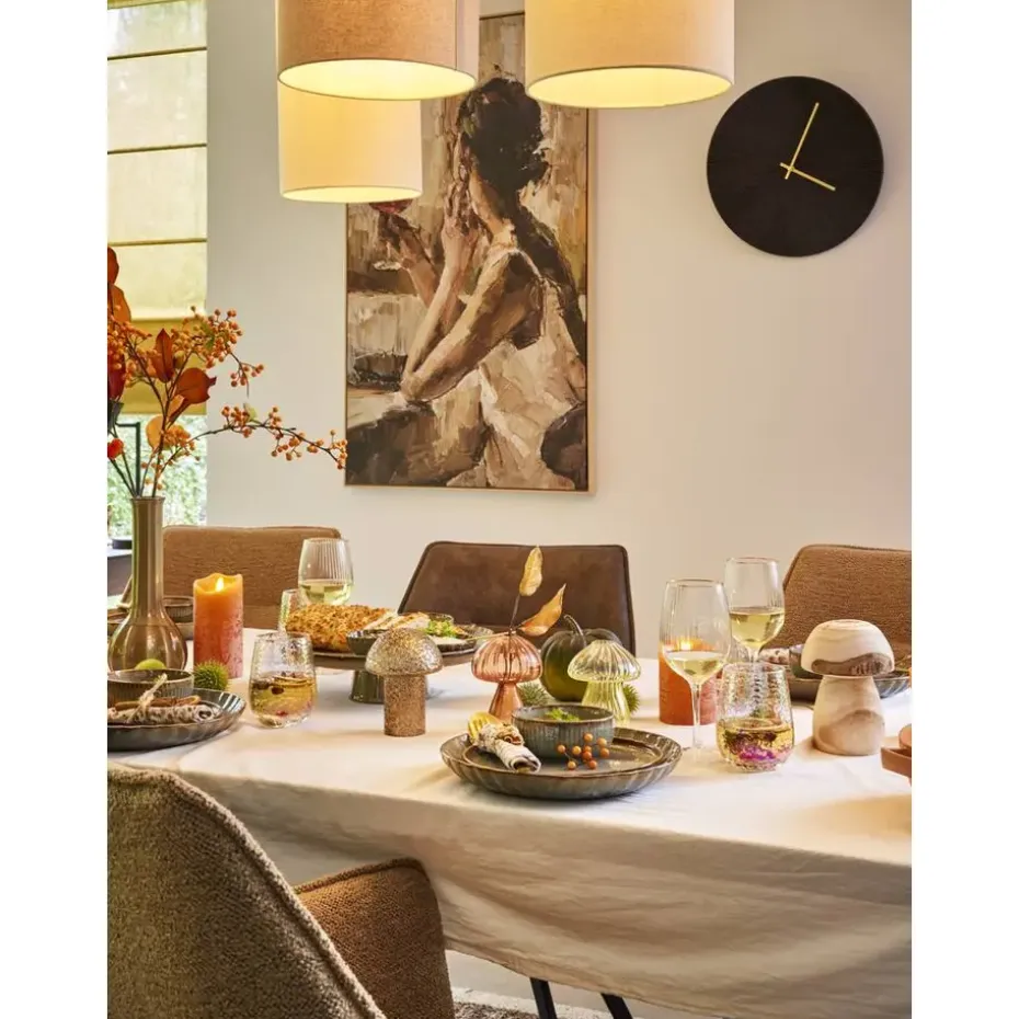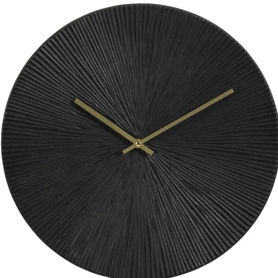 Wandklok Malaga is gemaakt van zwartkleurig MDF met goudkleurige wijzers. De klok heeft een stoere look met een gestreept patroon op de wijzerplaat. De wandklok heeft een diameter van 40 cm.