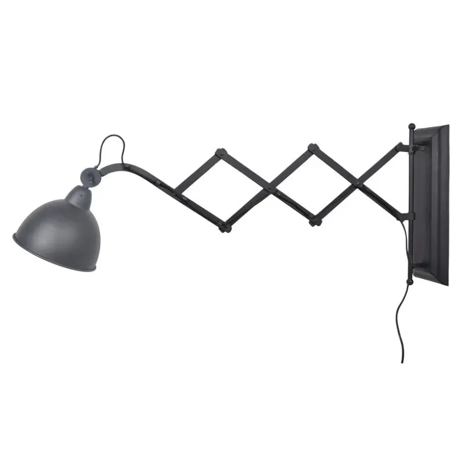 Hierdoor komt het licht altijd op de juist plaats. Aan de kap is een mooi textielsnoer gemonteerd, deze loopt via de harmonica constructie naar de wandplaat. Deze lamp is voorzien van een snoer met schakelaar en stekker.