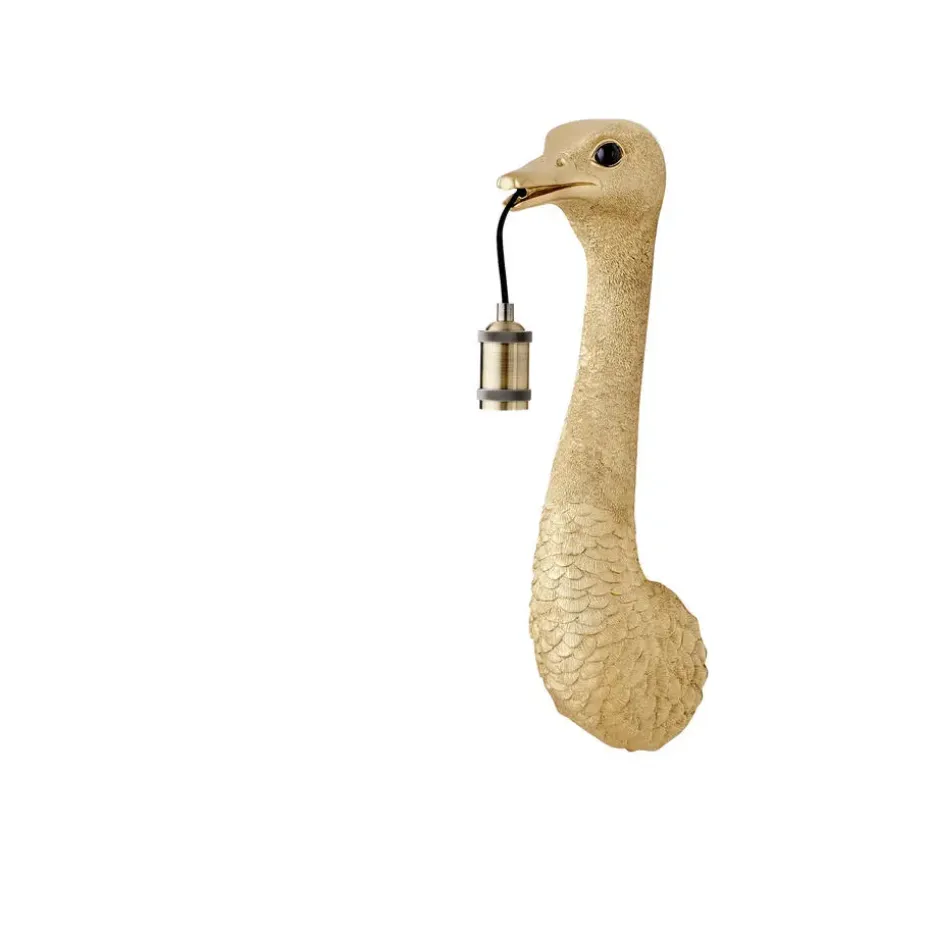 De goudkleurige Struisvogel wandlamp is een perfecte en speelse toevoeging aan je interieur. De vogel is niet alleen een cool woonaccessoire, maar ook een fijne lichtbron! Met een lamp in zijn snavel kan deze struisvogel je van licht voorzien. Bevestig deze wandlamp eenvoudig aan de muur en bedien hem moeiteloos met de snoerschakelaar. Je hoeft deze wandlamp niet aan te sluiten op een ingebouwd lichtpunt; steek de stekker gewoon in het stopcontact. De afmetingen van deze lamp zijn 18×15.5×57,5 cm.