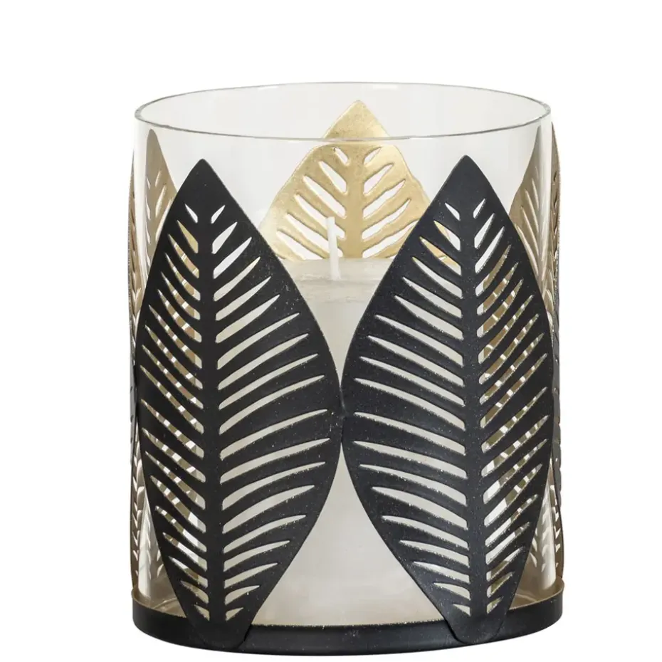 Betover je interieur met deze ronde Blad waxinelichthouder. De combinatie van glas met een metalen omhulzing in een prachtig bladerenpatroon zorgt voor een sfeervolle uitstraling. Met een afmeting van 12xØ10 cm is deze theelichthouder perfect voor elke ruimte. Creëer een warme en uitnodigende sfeer terwijl het kaarslicht door het bladerenpatroon dansend licht verspreidt, en geniet van de betovering die deze houder brengt.